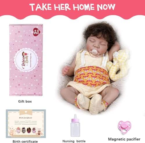 4. Compañera de juego amigable: Esta Muñeca de Bebé Renacido cumple con los requisitos de seguridad de ASTM F963 y EN71 para edades de 3+. Totalmente seguro para todos los niños.