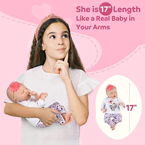 JIZHI tiene como objetivo ayudar a las personas a encontrar una muñeca de bebé renacida que se vea realmente realista. Por eso desarrollamos nuestra marca y producto con artistas de muñecas de bebé renacidas. El cuerpo de la muñeca está lleno de algodón PP de alta calidad y otras partes están hechas de vinilo de silicona suave, por lo que es suave para que los niños o bebés lo abracen. Los detalles pintados a mano hacen que cobren vida. Esta muñeca mide 17 pulgadas y puedes ponerle un nombre en su certificado de nacimiento. ¡Es un buen regalo para un bebé y será un amigo cercano de tu bebé! Lista de Paquetes: 1x Muñeca de Bebé Renacida 1x Biberón 1x Chupete magnético 1x Certificado de nacimiento 1x Conjunto de ropa como se ve en las imágenes