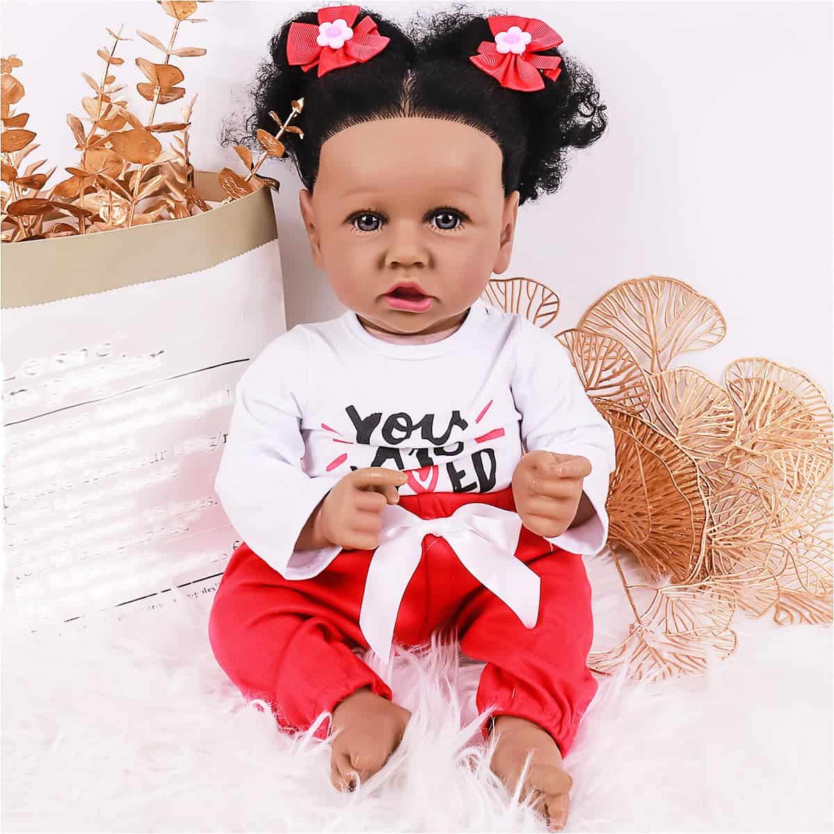 Muñecas Reborn Negras Vivas Kgniess de 22 Pulgadas Cuerpo