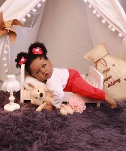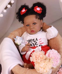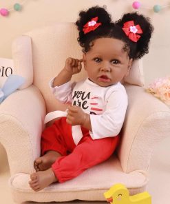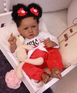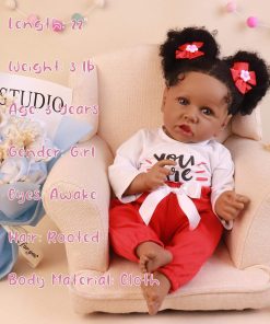 Tamaño: 22.8 pulgadas de cabeza a dedos, peso aproximado de 3.1 libras. Material de vinilo de silicona de alta calidad. Cabeza, brazos y piernas de vinilo de silicona, cuerpo de tela con relleno interno. El muñeco tiene movilidad en extremidades, puede sentarse y recostarse fácilmente pero NO puede pararse ni hablar. Cabeza de tamaño real con pestañas aplicadas a mano, cabello de alta calidad y ojos de acrílico de alta calidad. La piel ha sido tratada para no desvanecerse. 100% hecho a mano con pintura a mano.