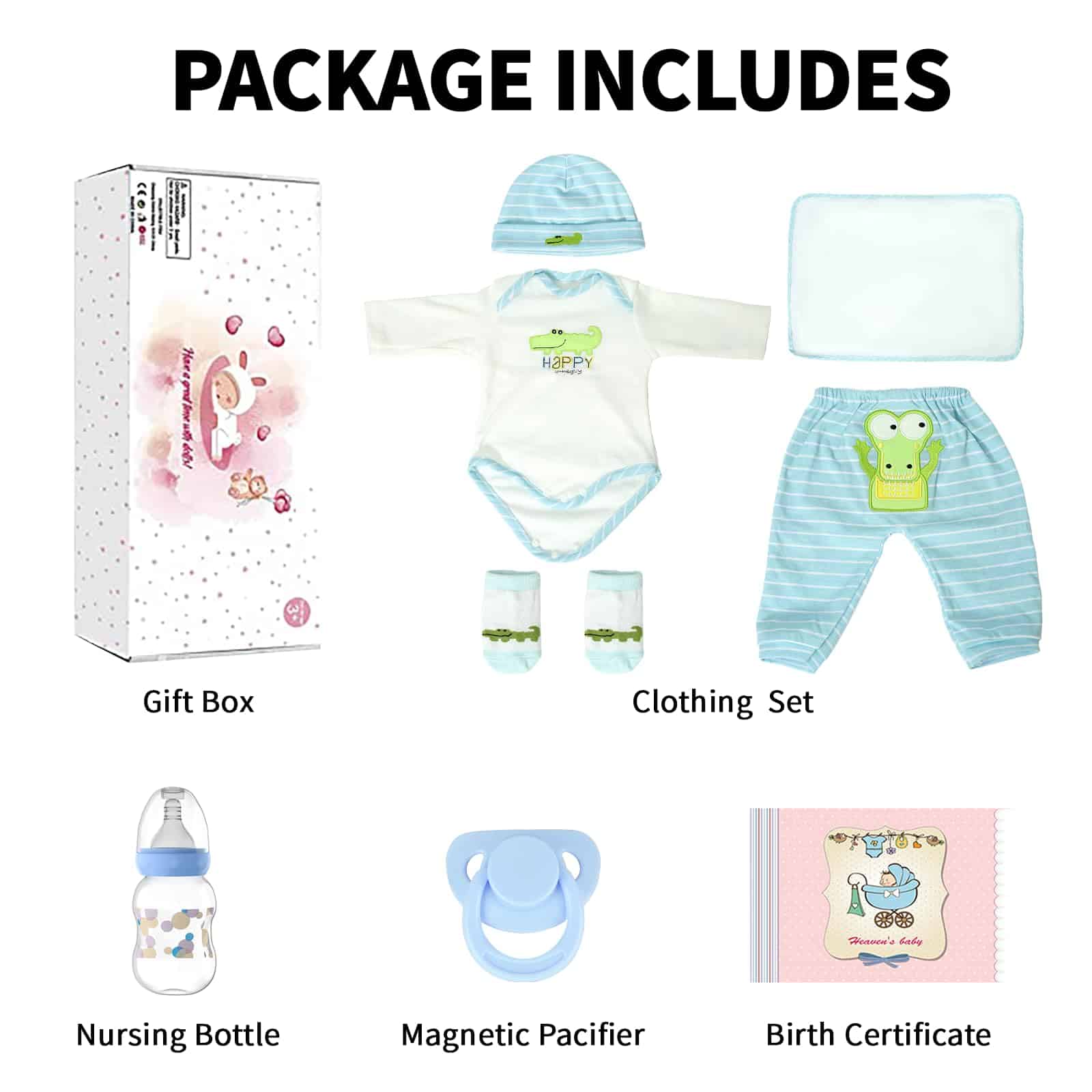 4. Seguro y Protegido: Sabemos que la seguridad es tu máxima prioridad, ¡y también la nuestra! Nuestras muñecas reborn están diseñadas para cumplir con los requisitos de seguridad de ASTM F963 y EN71, por lo que puedes estar seguro de que tu hijo está jugando con un juguete seguro y protegido. Nota: Apto para niños mayores de 3 años.