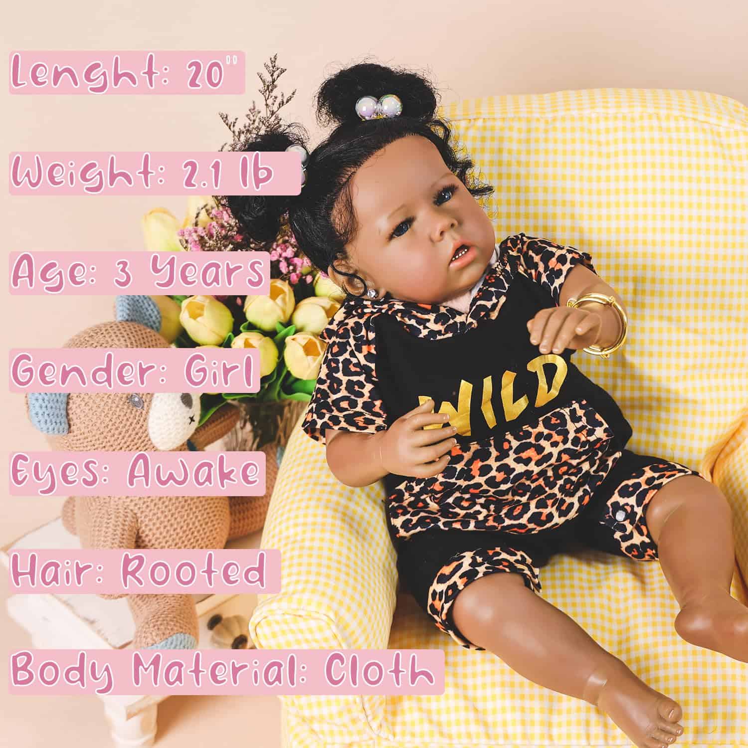 Muñecas Rebornova para Niñas Negras, Afroamericanas de 20