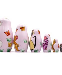 Este set está 100% hecho a mano y pintado a mano: incluye 7 muñecas de anidación; la muñeca más grande mide 5,3″ (13,5 cm), la más pequeña mide 0,9″ (2,3 cm); Madera natural – aliso o álamo; Pintura acrílica decorada; Terminado con barniz; Materiales ecológicos absolutamente seguros.