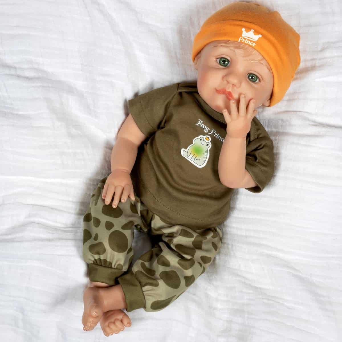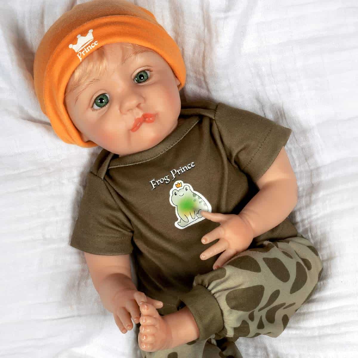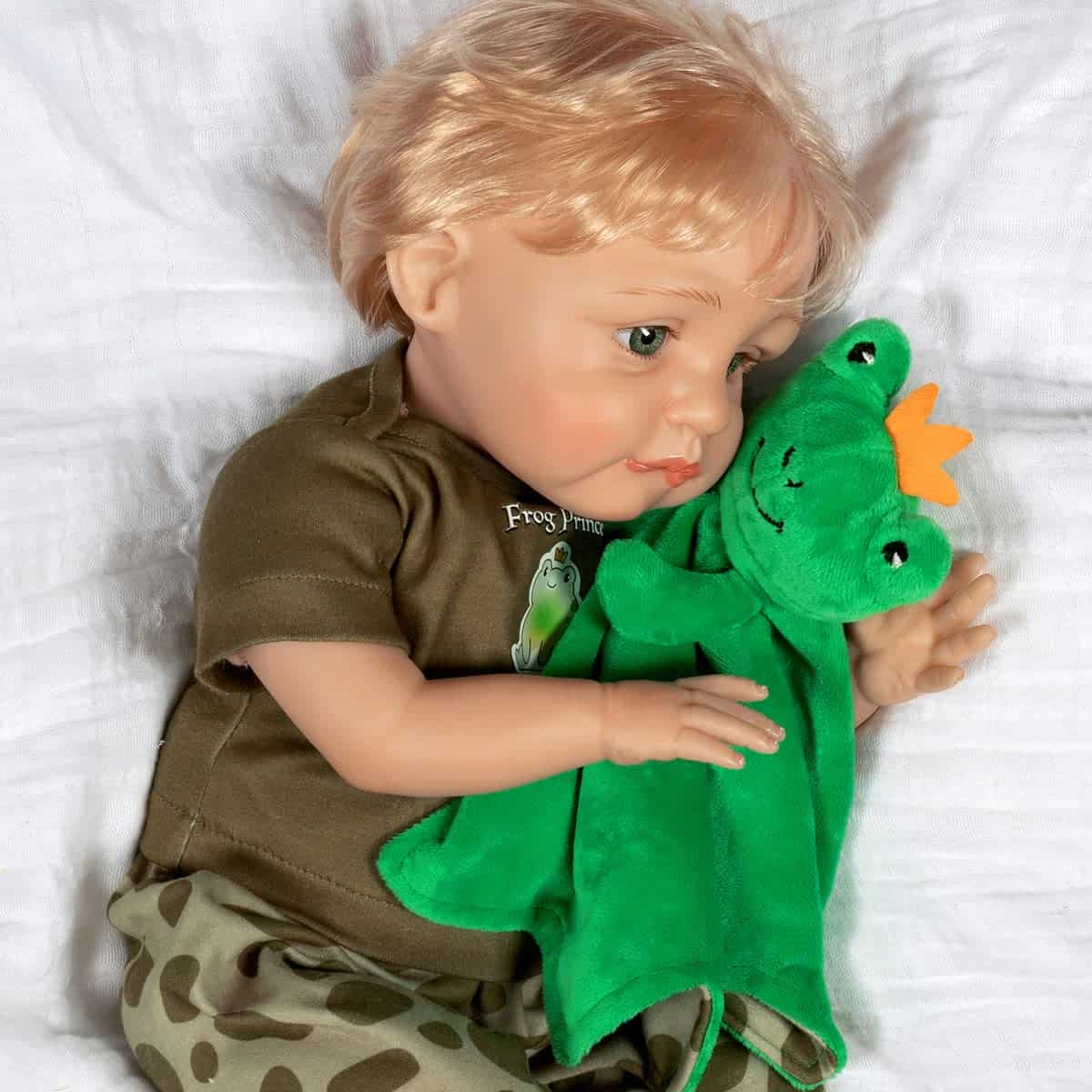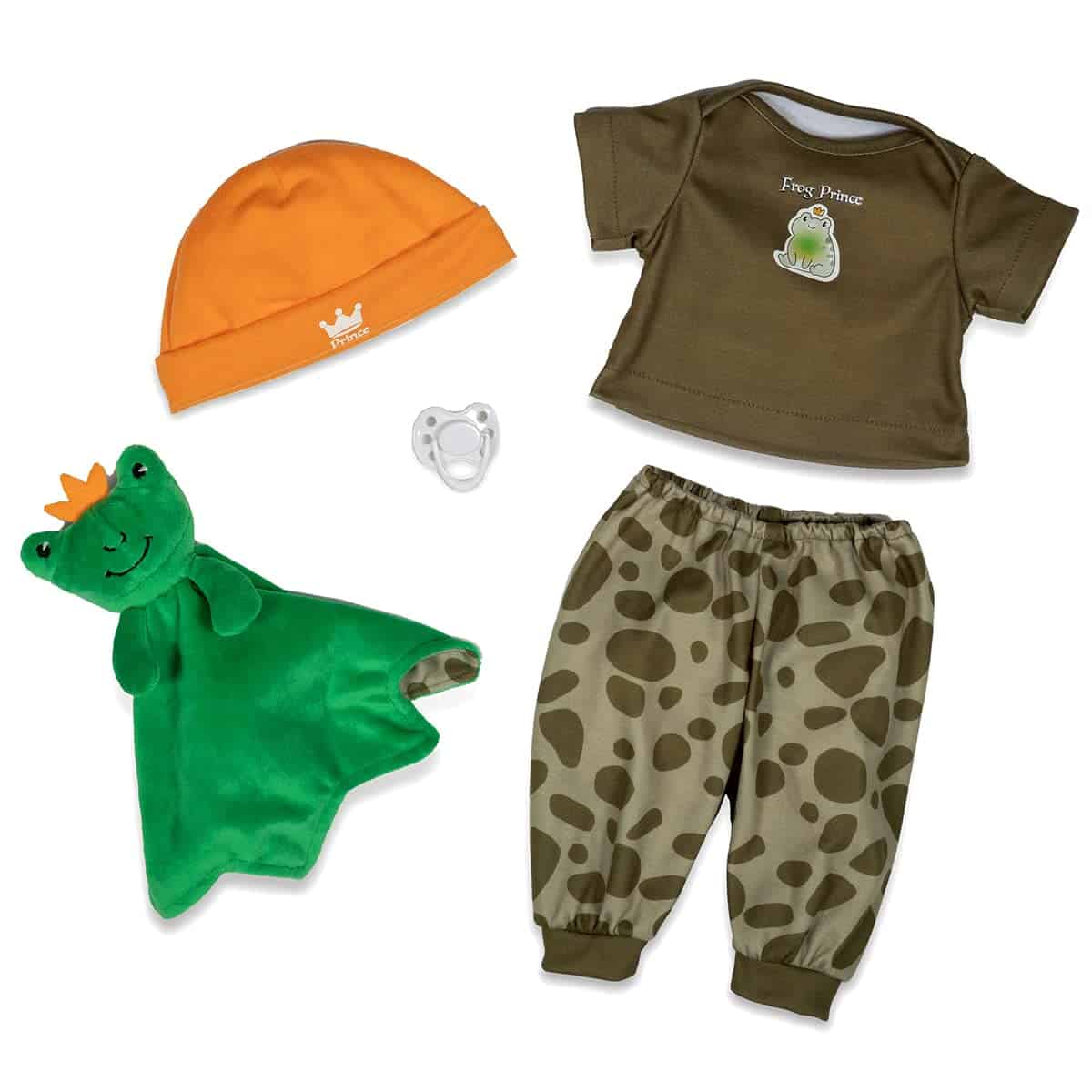 4. Viene con una camiseta estampada de rana, pantalones estampados, gorro, manta de rana amorosa y chupete magnético.
