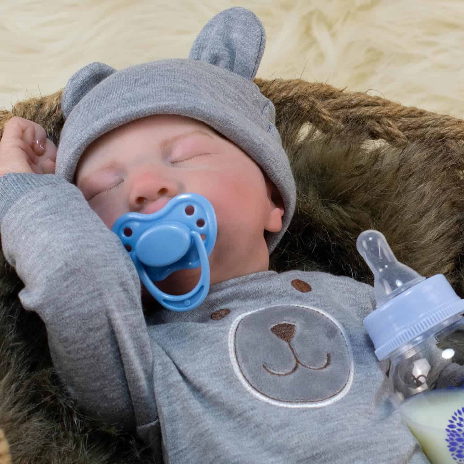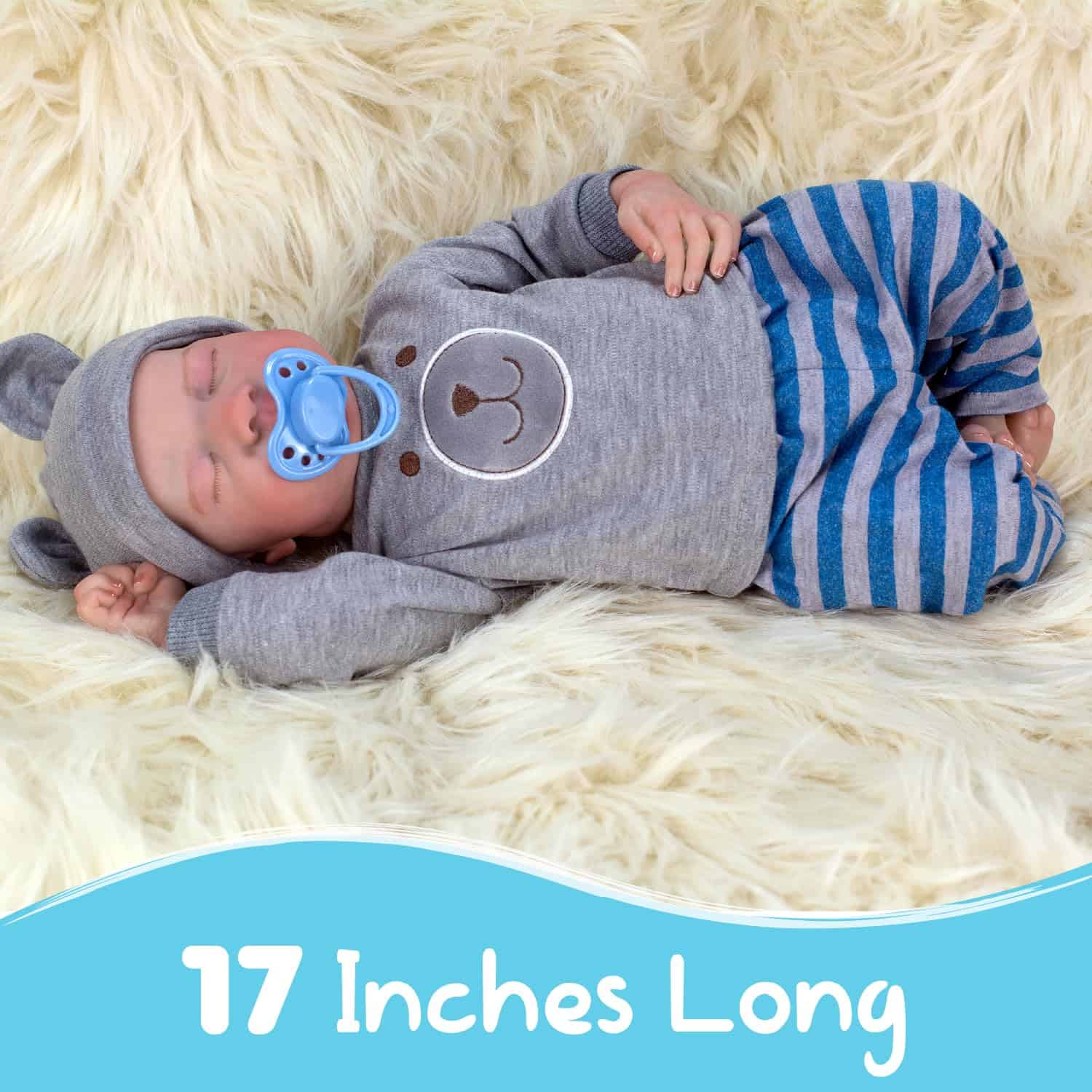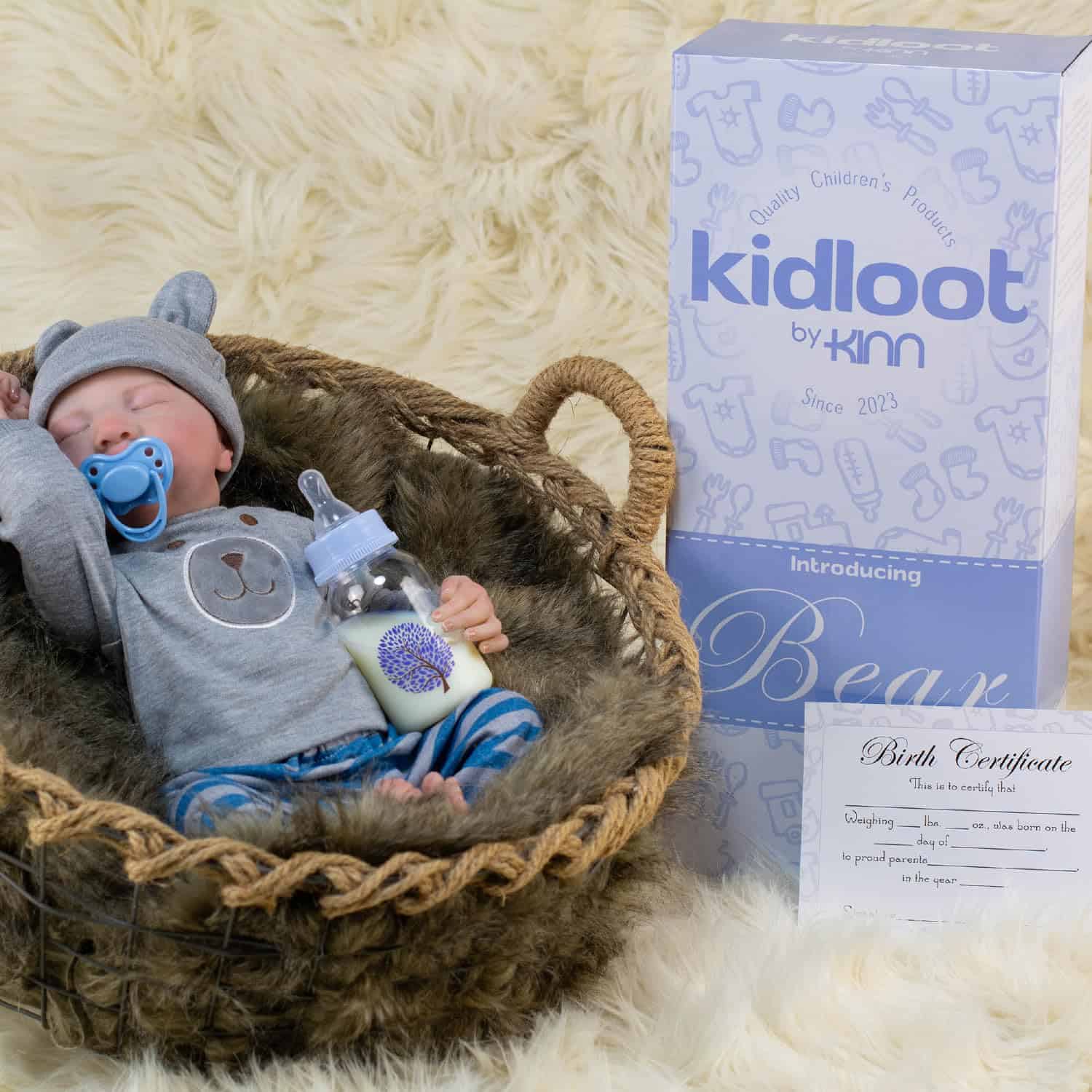 Cada muñeco «Bear» de Kidloot está meticulosamente elaborado para cumplir con los más altos estándares de calidad y seguridad, garantizando años de diversión para tu pequeño. Baby «Bear» fomenta la crianza y la empatía en los niños mientras cuidan de su propio muñeco de bebé realista. Ya sea que estén simulando alimentarlo, mecerlo o calmarlo para dormir, a los niños les encantará jugar a ser cuidadores y desarrollar habilidades sociales y emocionales importantes mientras cuidan a su Baby «Bear». Baby «Bear» presume de una apariencia realista, desde sus delicados rasgos faciales hasta sus manos y pies perfectamente esculpidos. Cada detalle, desde los sutiles pliegues y arrugas en su piel, está expertamente elaborado para asemejarse a un bebé varón dormido. Además, se ha dado un detalle extremo a los elementos pintados a mano, capturando las finas venas y la piel jaspeada de un recién nacido real. Baby «Bear» es un bebé de género masculino anatómicamente correcto. Con una cabeza y extremidades que giran fácilmente, Baby «Bear» puede ser colocado en varias posiciones para dormir, permitiendo un juego realista e interactivo. Ya sea que esté enrollado en una bola o estirado para un tranquilo sueño, aporta un nivel extra de autenticidad al tiempo de juego imaginativo. «Bear» es adecuado para niños de todas las edades, desde niños pequeños hasta preadolescentes, convirtiéndolo en un compañero atemporal que durará a medida que su hijo crezca. Incluye una botella y tapa «a prueba de fugas», así como un chupete magnético para mejorar el valor de juego y fomentar la interacción con «Bear». Hecho con materiales de alta calidad, Baby «Bear» es increíblemente suave y abrazable, brindando comodidad y compañía a niños de todas las edades. Vestido con un encantador traje y gorro que puede ser tanto ropa de día como pijama, Baby «Bear» está listo para ser alimentado, calmado, dormido o acostado. Su conjunto adorable aumenta su encanto y lo hace aún más irresistible para abrazar y cuidar. Ya sea para un cumpleaños, día festivo o ocasión especial, «Bear» es un regalo considerado y apreciado para los niños que aman las muñecas y el juego imaginativo. «Bear» viene en una bonita caja de regalo con la historia de «Bear» y un certificado de regalo en blanco, ambos agregando a la experiencia de traer a «Bear» a tu familia.