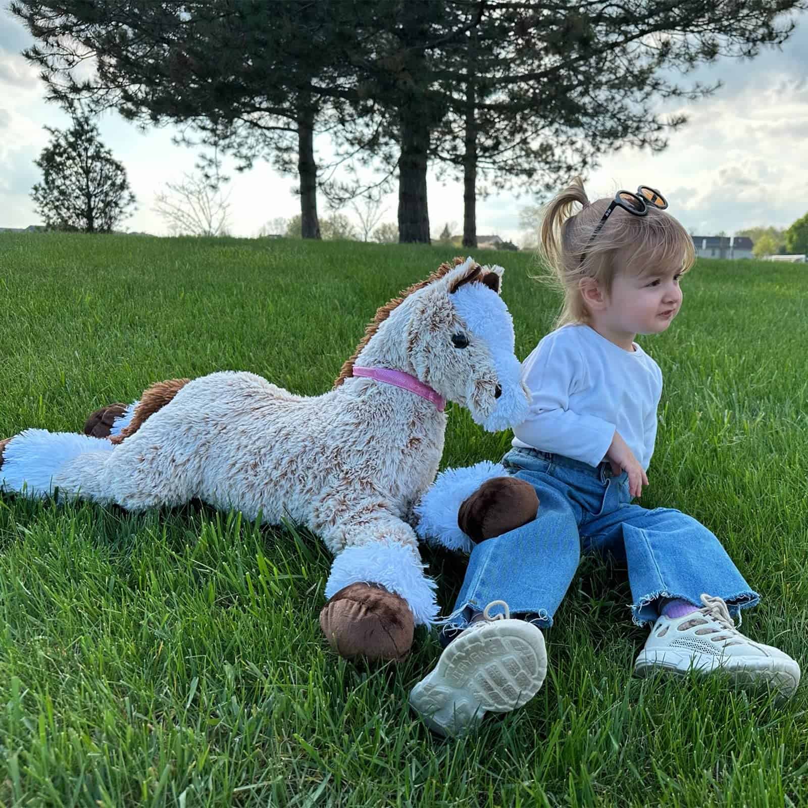 Nuestro gran caballo de peluche siempre está listo para la siesta, la hora de jugar y cualquier momento intermedio.