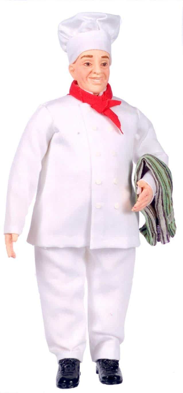 Muñeco de resina para tu escena en miniatura. El muñeco no tiene piezas móviles. Dimensiones: 3 W x 6-1/4 H x 1-1/2 D. Escala de 1:12. Tamaño ideal para una casa de muñecas. Detallado modelo a escala para coleccionistas adultos. No apto para niños menores de 14 años.