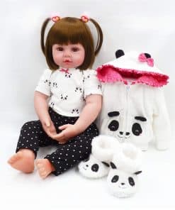 Nuestros muñecos reborn tiernos y realistas están hechos de materiales de alta calidad (silicona vinilo, ropa, ojos acrílicos, cabello y otros materiales de accesorios), seguros, no tóxicos para tus niños, materiales respetuosos con el medio ambiente y con un toque suave y cómodo. El muñeco vendrá con atuendos. Será un amigo de tu bebé y uno de tu familia. Deseamos que lo ames.
