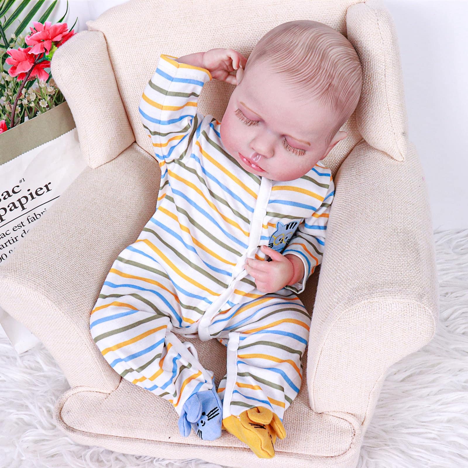 4. PERFECTO PARA COLECCIONISTAS Y TERAPIA: Ya sea un coleccionista en busca de una adición única a su colección o alguien buscando un compañero terapéutico para ayudar con el duelo o trastornos cognitivos, este muñeco de bebé reborn es la elección perfecta. También se puede vestir con ropa y pañales de tamaño recién nacido o prematuro.