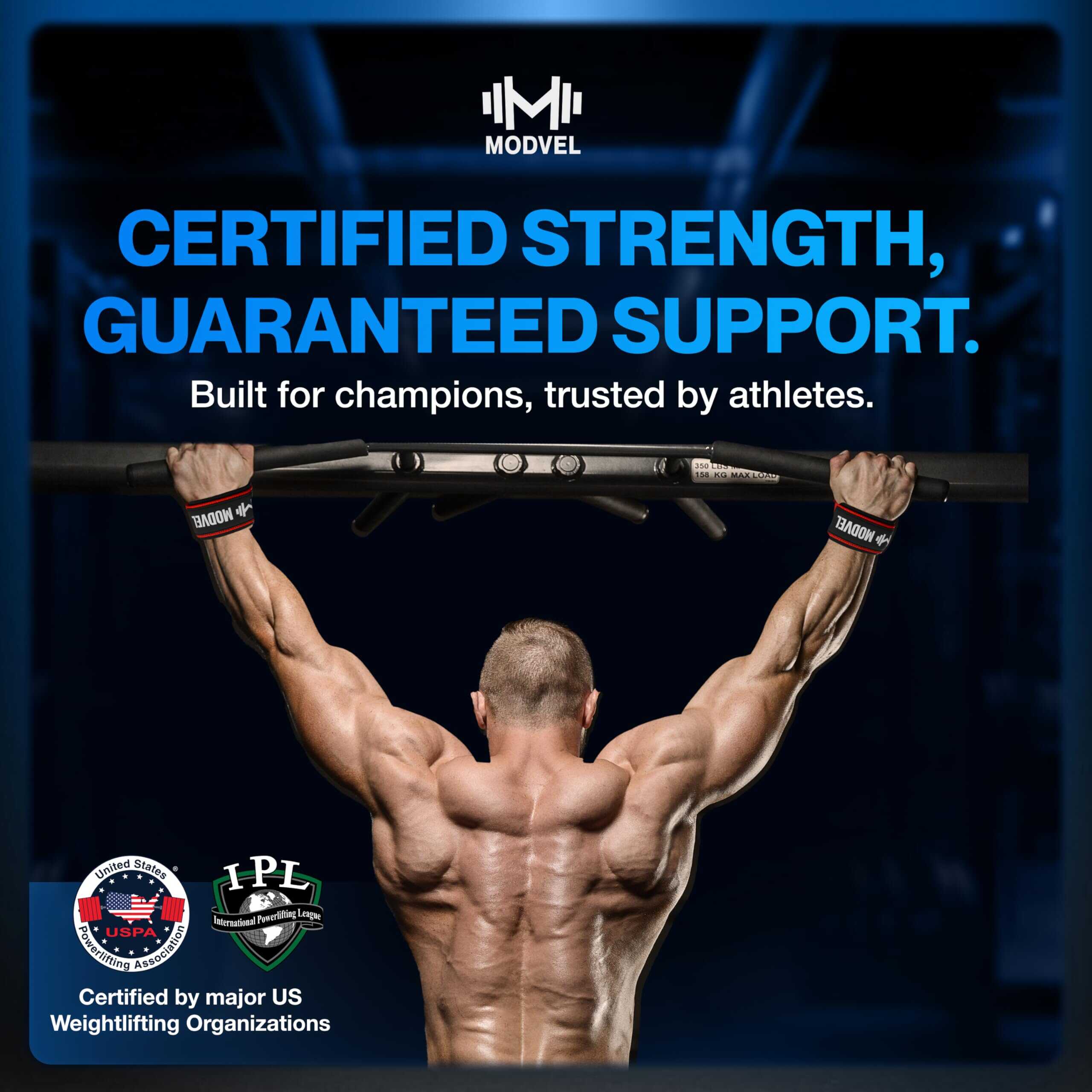 Eleve sus entrenamientos con las Correas de Muñeca para Levantamiento de Pesas de Modvel. Diseñadas para levantamientos pesados como peso muerto y sentadillas, estas correas cuentan con un agarre antideslizante para un mejor control y una cinta de algodón duradero para un uso prolongado. El acolchado de neopreno garantiza comodidad y protege sus muñecas, mientras que el diseño extralargo proporciona un agarre seguro en las barras. Certificadas por USPA e IPL, son perfectas para todas las tallas de muñeca e ideales para entrenamientos en el gimnasio o en casa. Levante más peso, reduzca la fatiga de agarre y alcance sus metas de fitness con las Correas de Muñeca de Modvel.