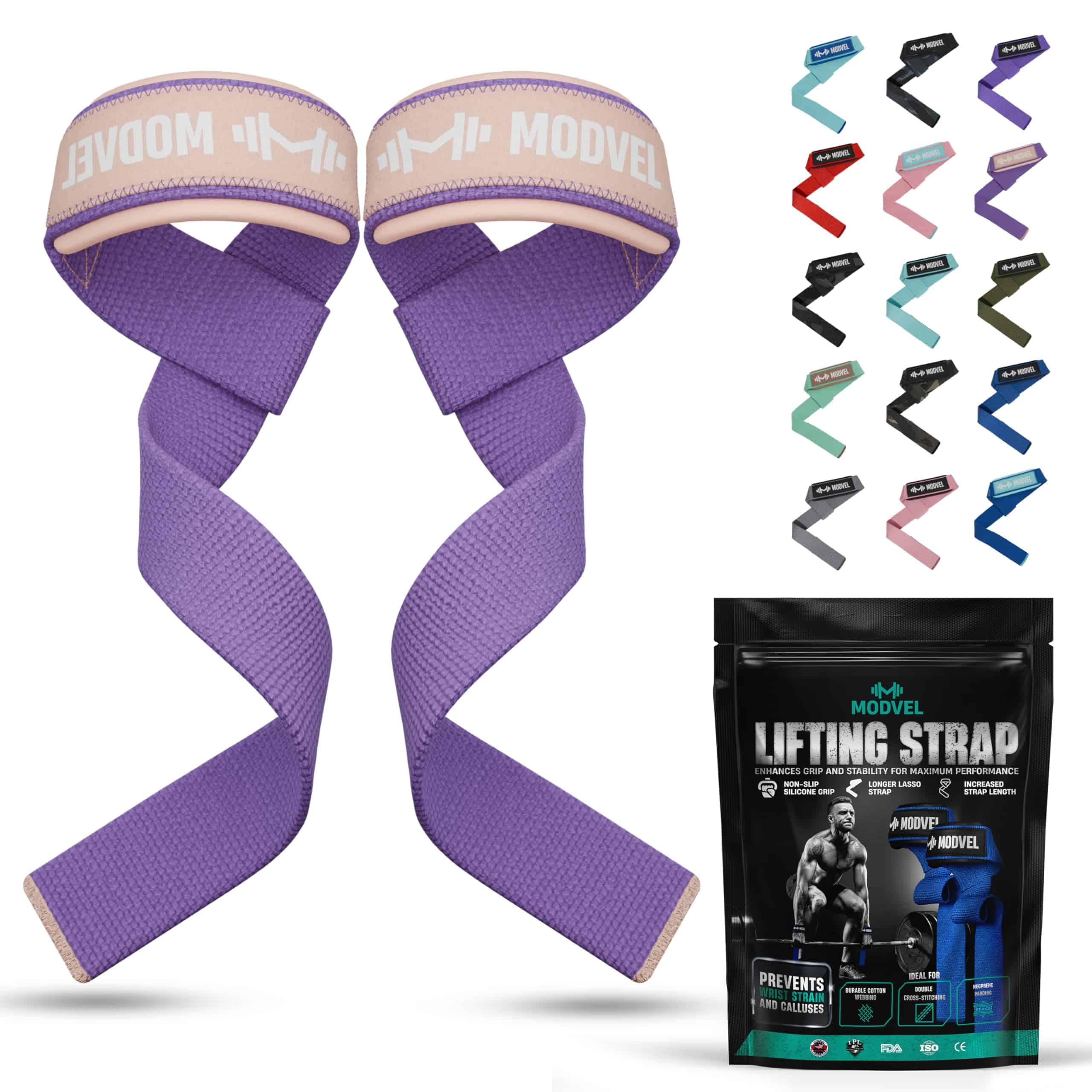 Eleva tus entrenamientos con las correas de muñeca para levantamiento de pesas Modvel. Diseñadas para levantamientos pesados como peso muerto y sentadillas, estas correas cuentan con un agarre antideslizante para un mejor control y una resistente cinta de algodón para un uso duradero. El acolchado de neopreno garantiza comodidad y protege tus muñecas, mientras que el diseño extra largo proporciona un agarre seguro en las barras. Certificadas por USPA e IPL, son perfectas para todas las tallas de muñeca e ideales para entrenamientos en el gimnasio o en casa. Levanta más peso, reduce la fatiga en el agarre y alcanza tus metas de fitness con las correas de muñeca Modvel.