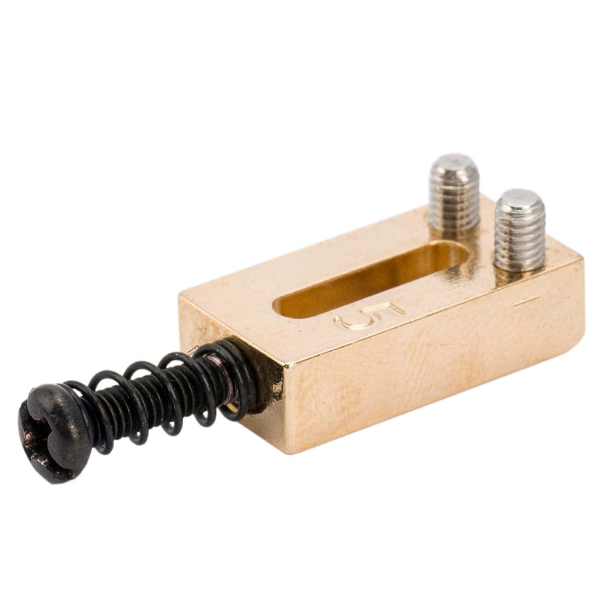1. Se adapta a muchos puentes de trémolo con 52,5 mm (2-1/16″) de espaciado de cuerdas, como Squier, Fender México o muchos puentes de guitarras estilo Strat estándar.