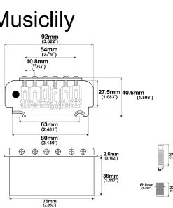 2. Espaciado de cuerdas: 10.8×5 54mm (2-1/8 pulgadas), espacio entre agujeros de poste: 63mm (2-31/64 pulgadas), altura del bloque: 36mm (1-27/64 pulgadas).