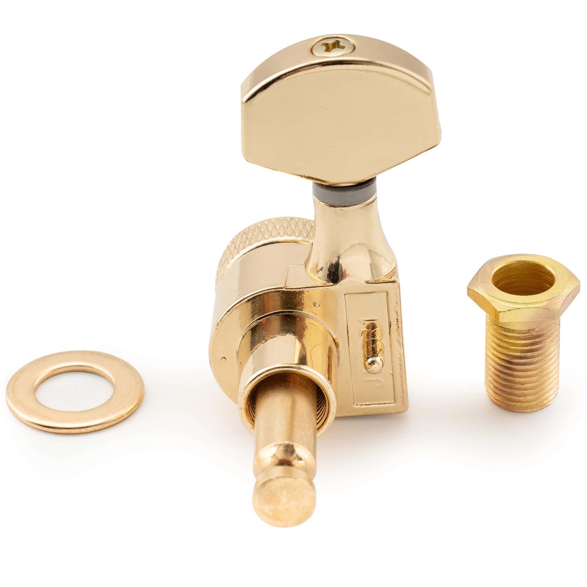Musiclily Pro 6 en línea 15:1 Relación 1-Pin Full Sealed Locking Machine Heads Tuners Clavijas de Afinación Teclas con Botón Hexagonal para Guitarra Eléctrica Estilo SQ Strat Tele, Dorado.