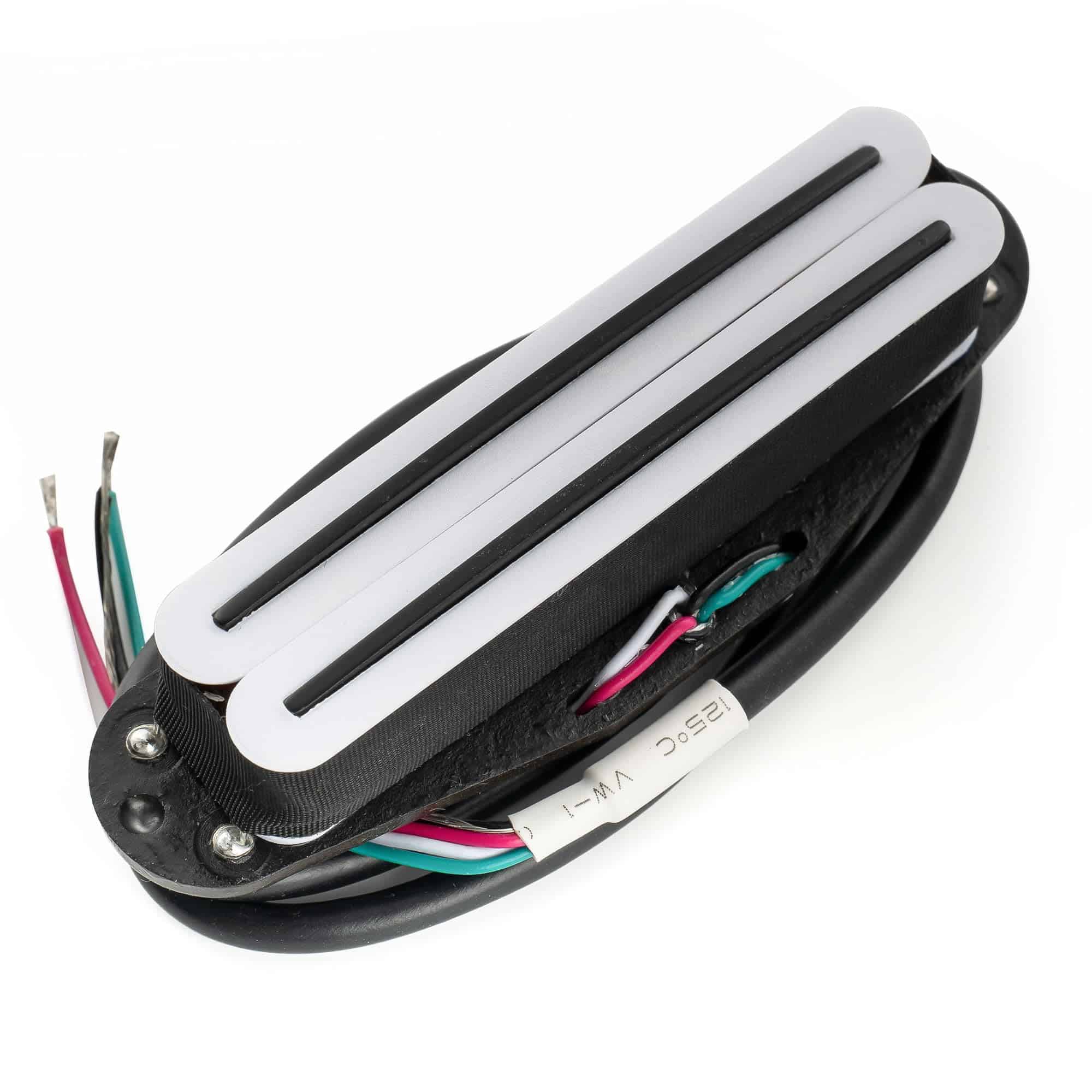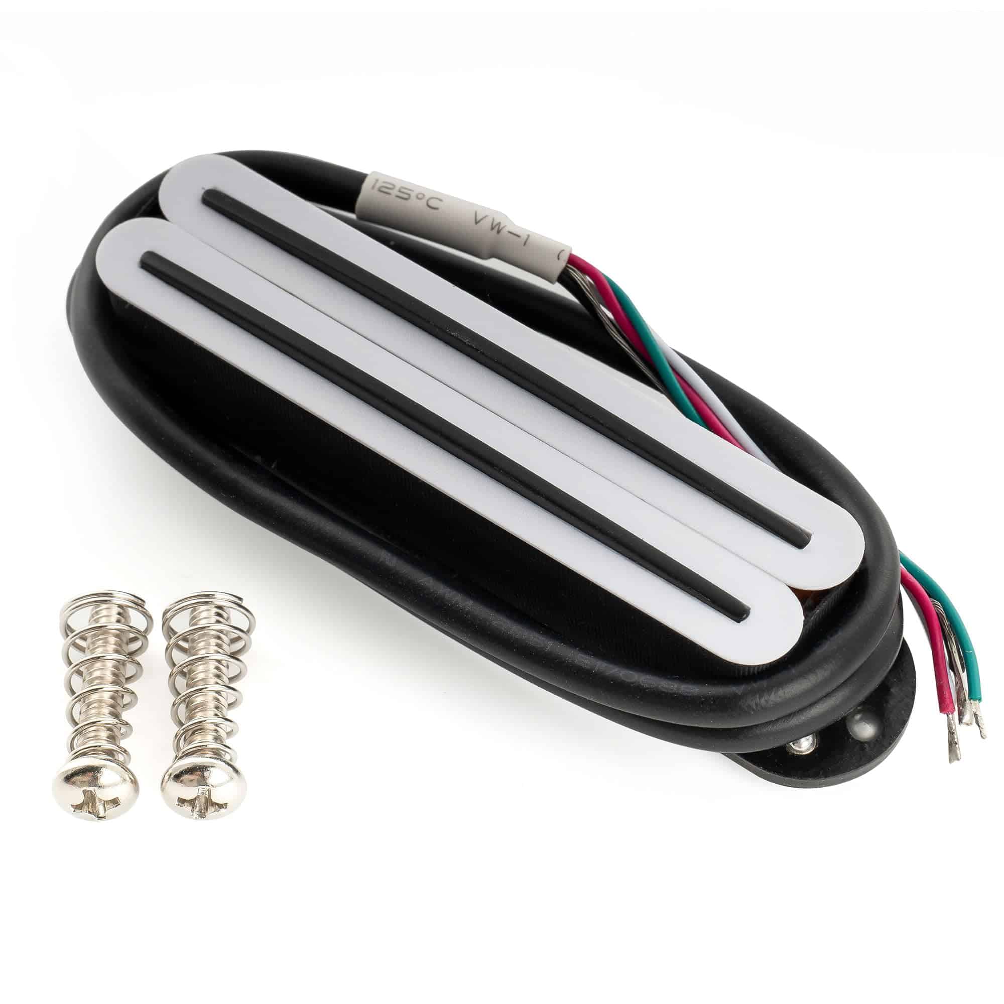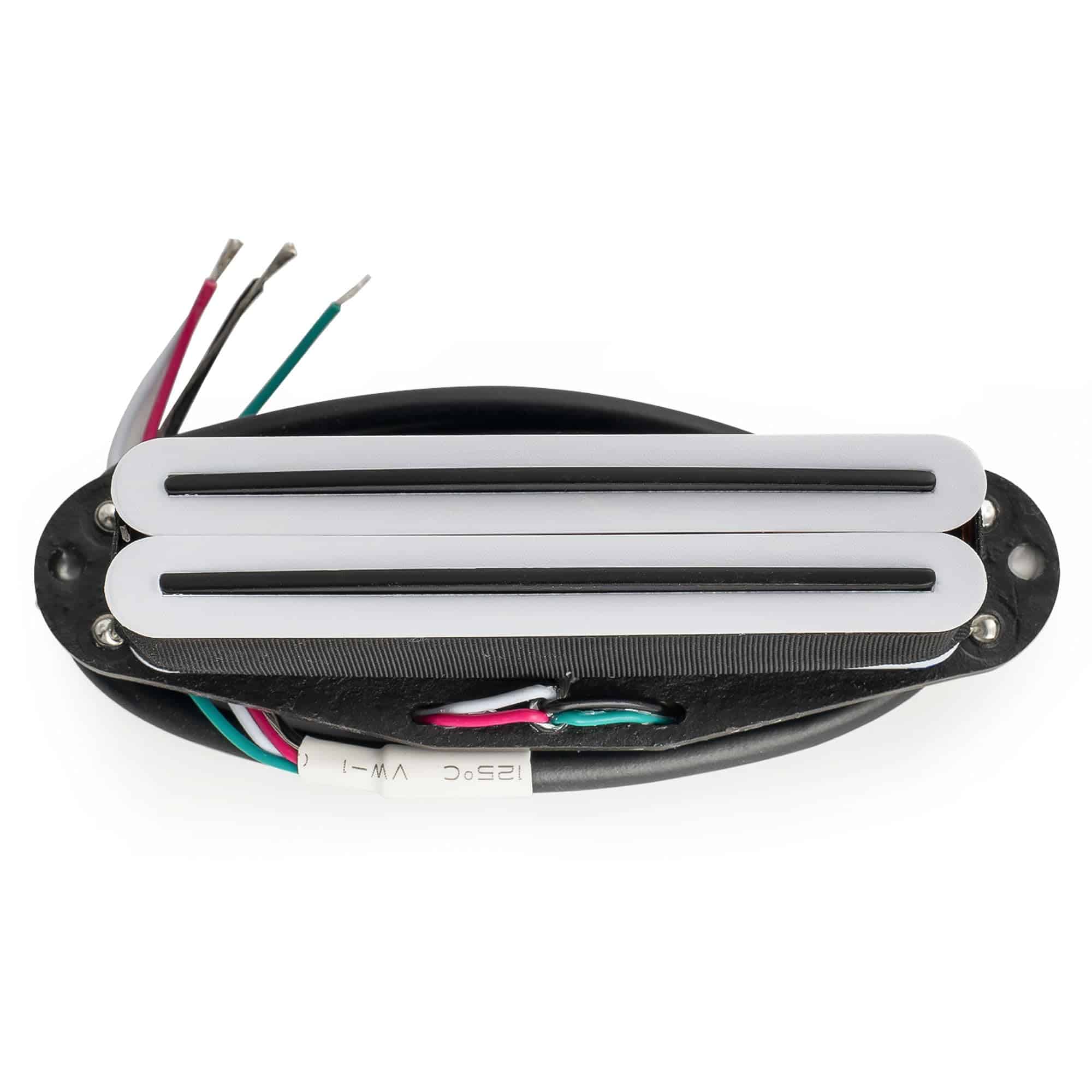 Musiclily Pro ST-DPLA Alnico 5 Dual Hot Rail Single Coil Sized Humbucker Pickup 6.2K para Guitarra Eléctrica Estilo Strat, Cuerpo Blanco Riel Negro.