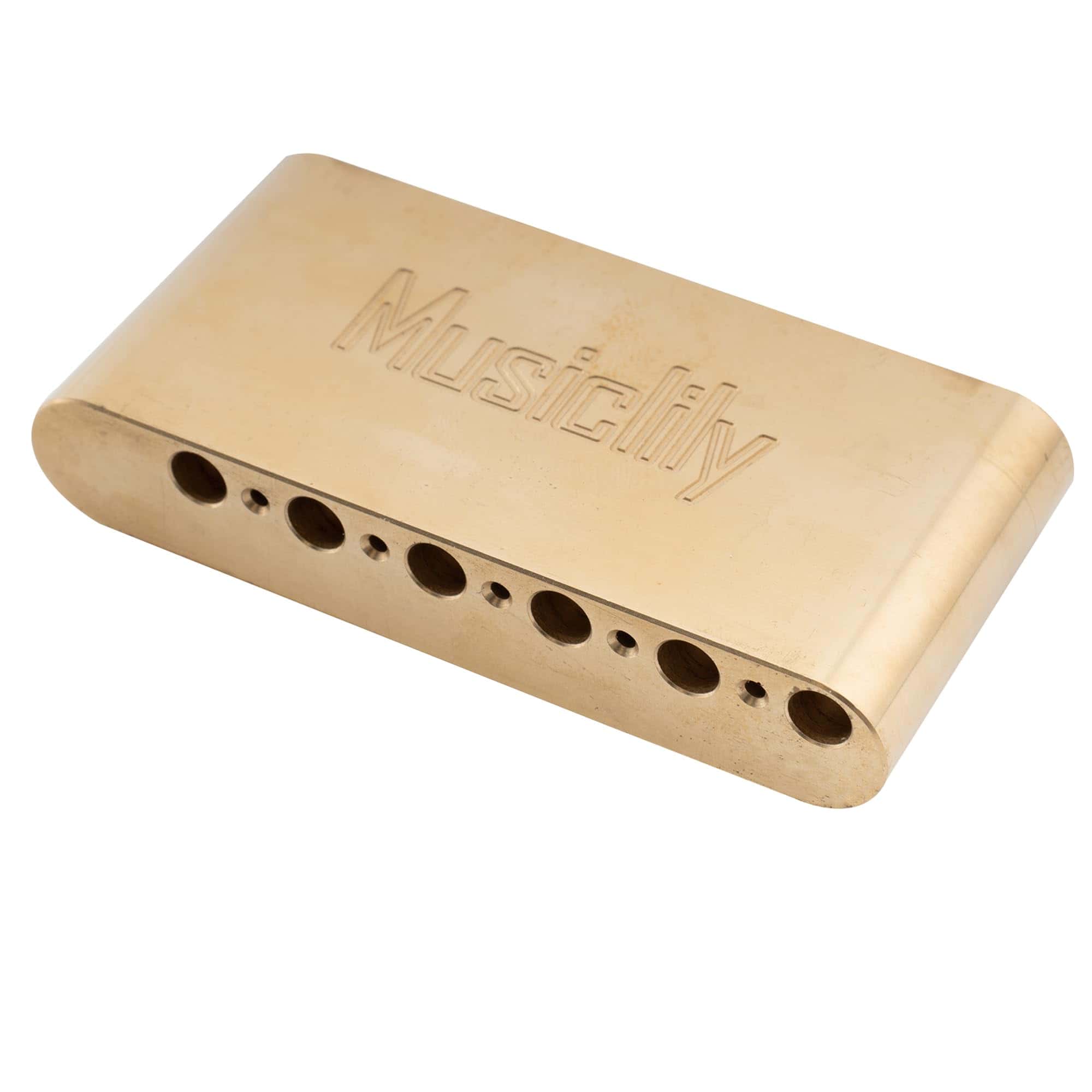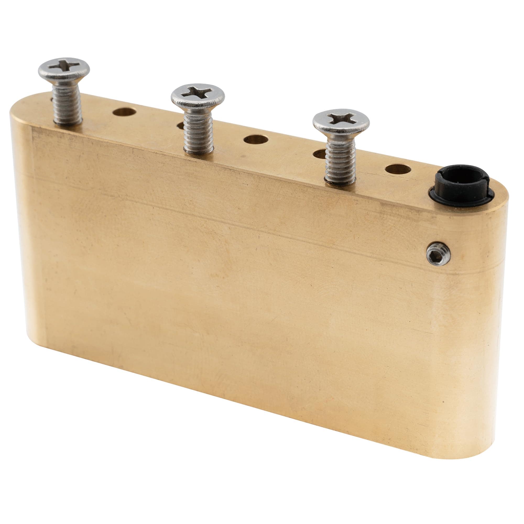 Quality full brass hecho, CNC de precisión ingeniería, agrega más sustain y aporta un acento más suave al sonido de tu guitarra, buena opción de reemplazo o actualización para el bloque tremolo de aleación de zinc de fábrica de tu guitarra. Orificio de 5mm (13/64 pulgadas) para brazo tremolo de estilo push-in, fácil de instalar y usar. Incluye: 1 bloque tremolo y accesorios de montaje en el paquete.
