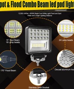 Iluminación fuera de la carretera: Las luces LED de niebla son ampliamente compatibles con Motocicleta, 4×4, ATV, UTV, SUV, Camión, Automóviles, Pick-up, Furgoneta, Camper, Buggy de carretera, Ferrocarriles de arena, Autobuses, Tanques, etc. El haz de luz superbrillante disipa la oscuridad e ilumina la carretera hacia adelante, área de vista clara para una conducción segura.