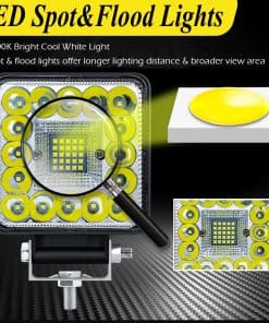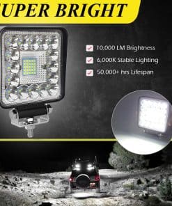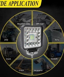 MUVKQC es un fabricante profesional de luces LED para automóviles. Nos enfocamos en el diseño, desarrollo, ensamblaje y producción de varias luces para automóviles, como luces de trabajo LED, barras de luz LED off-road y luces de conducción LED. La alta calidad y el diseño único tienen como objetivo proporcionar iluminación para todos los clientes que conducen de noche, convirtiendo la noche en día. Nuestras cajas de luz LED son populares entre todos los clientes por su alta calidad y precios asequibles. El amplio voltaje de trabajo las hace adecuadas para casi todos los vehículos. ESPECIFICACIONES: Luminosidad: 10000 LM (10000LM cada una) Voltaje de Entrada: 9-80V CC (se adapta a vehículos de 12V, 24V) Potencia de la Lámpara: 123W/PCS Temperatura de Color: 6000K Tipo de Luz: Spot & Flood Vida Útil: Más de 50,000 horas Tipo de LED: 5050 SMD-LED Temperatura de Trabajo: -40 ~ + 85 grados Celsius Diámetro de los Pernos 0.28in, Longitud 0.95, 0.55 APLICACIÓN: Iluminación Off Road: Las luces de niebla LED pueden ser ampliamente compatibles con Motocicletas, 4×4, ATV, UTV, SUV, Camión, Automóviles, Pick-up, Furgoneta, Autocaravana, Buggy de Carretera, Sand Rail, Trenes, Autobús, Tanques, etc. El haz de luz súper brillante despeja la oscuridad e ilumina el camino hacia adelante, área de visión clara para una conducción segura. Iluminación de Barcos: Las luces para barcos se pueden instalar en barcos, yates, botes de remos y barcos para mejorar el brillo iluminador del viaje. Iluminación de Equipos: Las barras de luces de niebla LED son adecuadas para Remolques, Montacargas, Excavadoras, Buldóceres, Rodillos de Carretera, Grúas, Tractores, Cosechadoras, Perforadoras de Granos, Cortadoras de Césped, Quitanieves, Camiones de Bomberos, Vehículos de Rescate, Camping, Minería, Construcción y otra iluminación exterior. Otras Iluminaciones: También puede usar luces LED de 4 pulgadas para iluminación domiciliaria como Jardines, Patio Trasero, Garaje e Iluminación Interior. La luz brillante circundante es muy conveniente para que disfrutes de tu tiempo de diversión. (Nota: Utiliza un transformador/conversor de voltaje para convertir el CA 110-120V en CC 12V para uso en interiores).