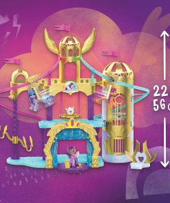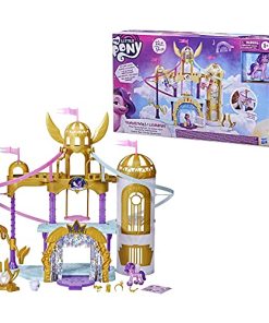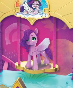 Conoce a la Princesa Pipp Petals: ¡un Pegaso de Zephyr Heights! La Princesa Petals es una estrella pop elegante y talentosa. Imagina prepararla para su actuación más emocionante hasta ahora con los Royal Racing Ziplines. Inspirado en el palacio de Zephyr Heights en la película My Little Pony: A New Generation, este castillo de juego para niñas y niños mide 22 pulgadas / 56 centímetros de altura. Coloca los ponis incluidos de la Princesa Petals y las figuras de mascotas Cloudpuff en las ziplines. ¡Luego, haz que corran desde la torre más alta del castillo hasta el escenario de la actuación! Incluye 9 accesorios de moda y cuentos y espacios de juego activos y divertidos dentro del castillo. Incluye una figura de poni rosa articulada de 3 pulgadas de la Princesa Petals con cabello morado moldeado con un aspecto brillante especial. ¡El juguete de la película es un gran regalo para fiestas o cumpleaños para niños a partir de los 5 años de edad! My Little Pony y todos los personajes relacionados son marcas comerciales de Hasbro.