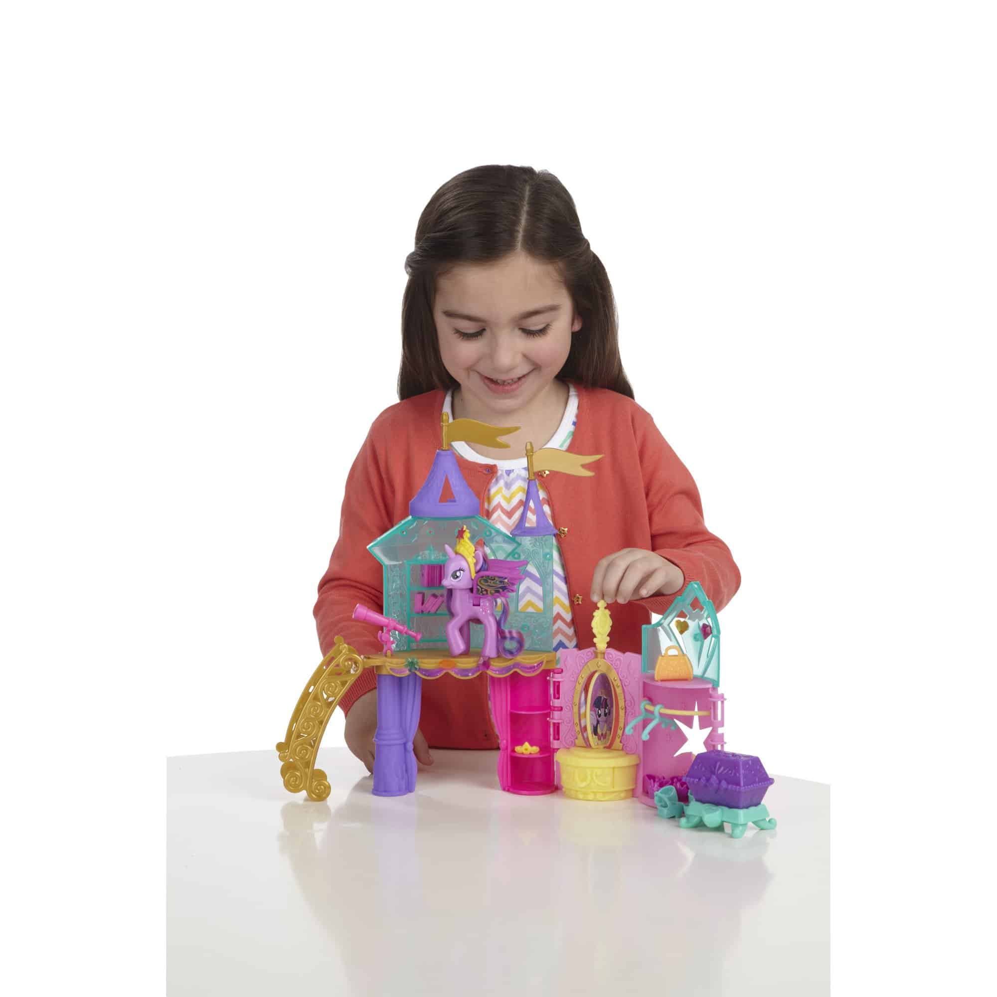 Bienvenido al mundo de My Little Pony, un lugar lleno de la magia de la amistad. Con sets de juego imaginativos, coloridos amigos ponis y divertidos accesorios para peinarlos y vestirlos, las niñas pueden crear el mundo de My Little Pony en casa y unirse a la emoción de la celebración de la princesa! Ahora puedes entrar en el mágico mundo del poni princesa Twilight Sparkle y su propio set de juego Palacio de Cristal de la Princesa.