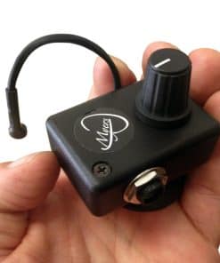 ESPECIFICACIONES: Diseño compacto. Perilla de volumen de goma suave estriada. Preamp activo alimentado. Fuente de alimentación (incluida). Hardware de montaje (incluido). Jack de entrada de 1/4″ con activación de interruptor de preamp. Micrófono de captación omnidireccional altamente sensible incorporado. Compatibilidad con pedales de efectos. Hecho en EE. UU. Solicitudes de Patente Pendientes.