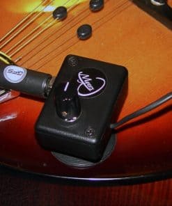 ESPECIFICACIONES: Diseño compacto. Perilla de volumen acanalada de goma suave. Preamp activo alimentado. Fuente de alimentación (incluida). Hardware de montaje (incluido). Jack de entrada de 1/4 con activación de interruptor de preamp. Micrófono incorporado altamente sensible omnidireccional. Compatibilidad con pedal de efectos. Hecho en EE. UU. Patentes en trámite.