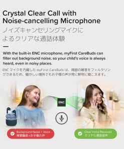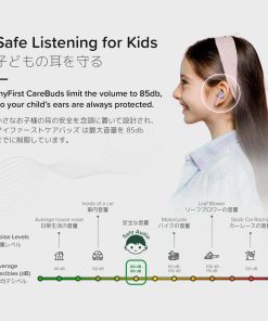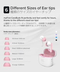 1. Diseñado para oídos pequeños Perfecto ajuste para niños Los myFirst CareBuds están diseñados para proporcionar la máxima comodidad con un ajuste sellado en el oído y puntas de oído de silicona suave en 5 tamaños, incluyendo XXS, asegurando un ajuste perfecto para niños con canales auditivos más pequeños. Diseñados específicamente para niños de 3 a 12 años, estos audífonos ofrecen tanto comodidad como protección. 2. Volumen de escucha seguro 85dB Protección para oídos jóvenes Mantén los oídos de tu hijo seguros con un diseño de límite de volumen que limita el nivel de sonido máximo a 85dB. Siguiendo las recomendaciones de los expertos, estos audífonos protegen contra daños auditivos a largo plazo, convirtiéndolos en la mejor opción para una escucha segura durante sesiones prolongadas. 3. Tiempo de reproducción prolongado y uso durante todo el día Con un impresionante tiempo de reproducción de 36 horas y una carga rápida USB-C, tu hijo puede disfrutar de una escucha durante todo el día. Con un rango de Bluetooth de hasta 30ft (10m) y un micrófono integrado, estos audífonos son perfectos para mantenerse conectado durante todo el día. Ofrecen un rendimiento de batería fiable que acompaña el estilo de vida activo de tu hijo. 4. Control sencillo y conexión rápida Diseño amigable para niños Los myFirst CareBuds cuentan con emparejamiento rápido automático para una configuración sin complicaciones, permitiendo a los niños conectar y utilizar sus audífonos en segundos. Los controles táctiles sin cables y sin botones facilitan reproducir/pausar música, ajustar el volumen y gestionar el emparejamiento Bluetooth todo con un simple toque, diseñado específicamente para manos pequeñas. 5. Ligero y resistente al agua Diseñado para durar La durabilidad se encuentra con la conveniencia en el diseño ligero y resistente al agua de los myFirst CareBuds. El IPX4 los hace resistentes a derrames, sudor y lluvia, ideal para el uso activo de los niños y probado para resistir las rigurosidades de las aventuras diarias.