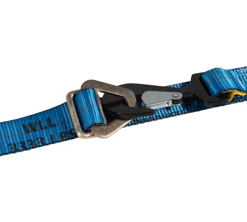 Límite de Carga de Trabajo: 3,333 Lbs Resistencia de Rotura de Ensamblaje: 10,000 Lbs Gancho de Resorte en ambos extremos (11,000 Resistencia de Rotura) Anilla completamente ajustable con ajustador de correa de bloqueo (10,000 Resistencia de Rotura) Funda de Cordura para una protección adicional contra la abrasión Cinta de Alta Resistencia de 2″ (12,000 Resistencia de Rotura) con ribete negro