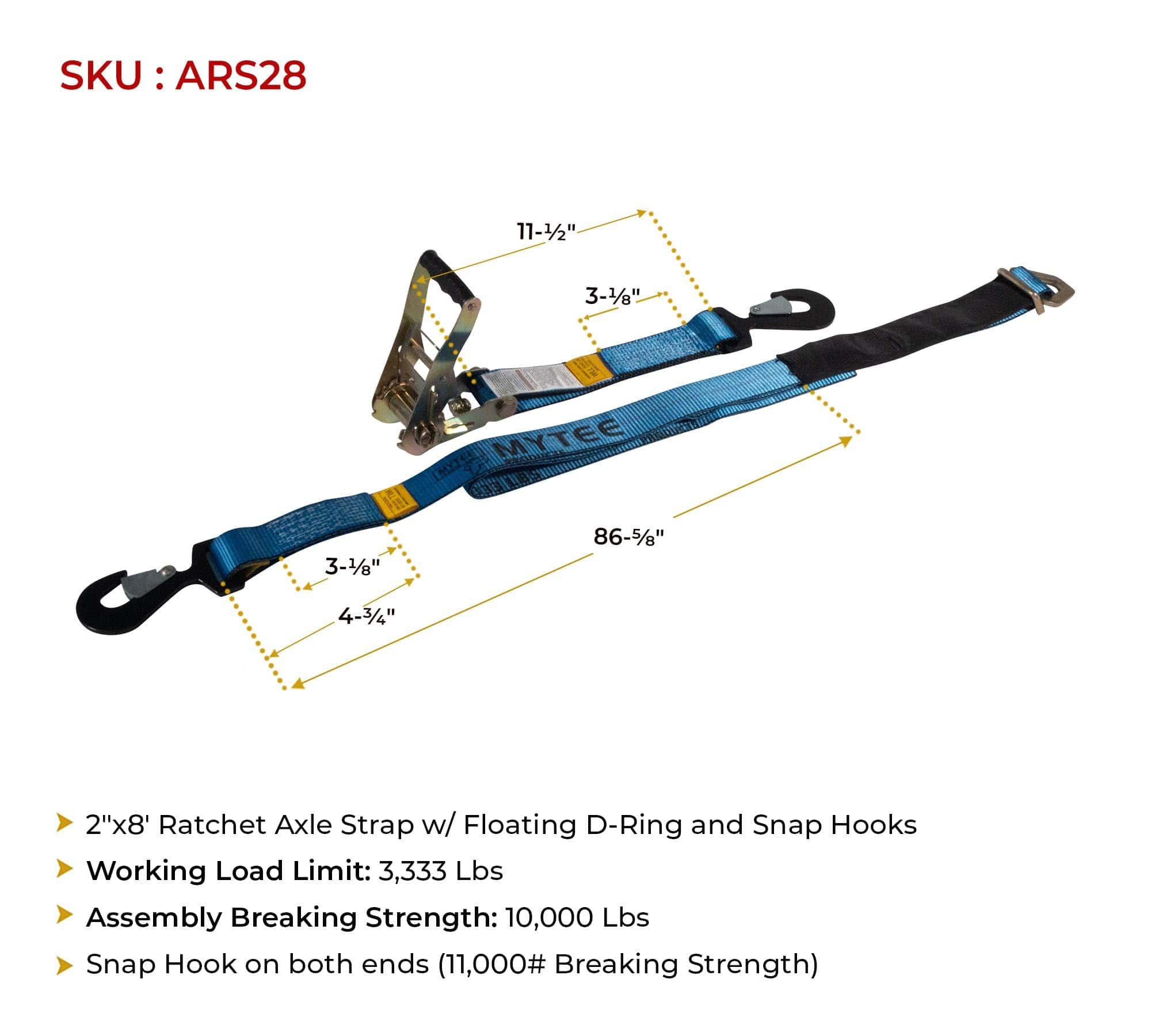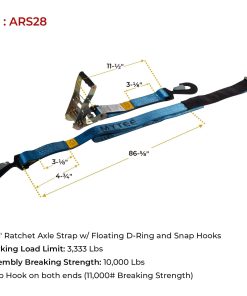 Amarre de forma segura su vehículo utilizando nuestras Correas de Eje de Trinquete. La correa cuenta con una Anilla ajustable que se puede mover a la ubicación adecuada en las correas para un amarre adecuado. Use esta correa junto con nuestras correas de eje para amarrar de forma segura su vehículo.