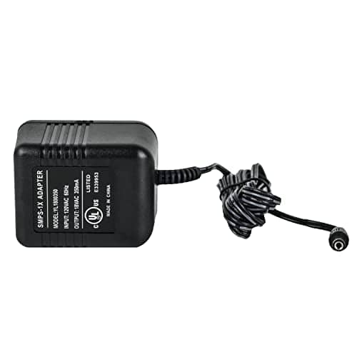 Panel trasero con conector de salida de audio de 1/4″ y conector de entrada de corriente continua para el adaptador de CA/CC suministrado.