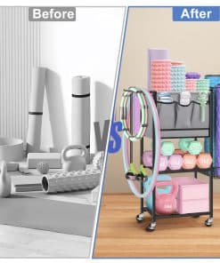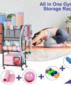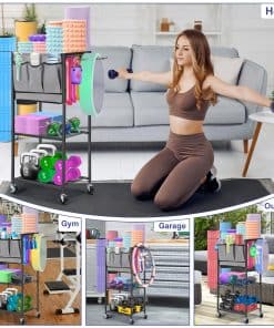 1. Soporte de Almacenamiento Multifuncional: El soporte de almacenamiento para gimnasio en casa es adecuado para almacenar equipo de entrenamiento en el hogar, estudio de yoga, garaje. Como tapetes de yoga, rodillos de espuma, bloques de yoga, ruedas de yoga, mancuernas, pesas rusas, bandas de resistencia y más.