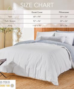 SHOP THE LOOK: Estos son los artículos adicionales mostrados en nuestra foto de estilo de vida; Juego de sábanas de algodón chambray de 4 piezas en tamaño individual en gris claro; Funda de almohada euro acolchada de algodón en blanco; Cojín de algodón con rayas texturizadas en azul marino; Utilice el número entre paréntesis para buscar los artículos coordinados en nuestra tienda; Desplácese hacia abajo para obtener más información. DETALLES FINOS: Set de 2 incluye 1 edredón y 1 funda de almohada estándar/queen a juego con cierre de solapa de 4 pulgadas en el centro; El set de algodón percal de 200 hilos es suave, duradero y naturalmente transpirable; La funda de edredón de algodón percal está tejida para ser fresca al tacto; La ropa de cama percal es resistente a las bolitas y absorbe la humedad; Las correas en las esquinas evitan que la ropa de cama se desplace; Los cierres de botones ocultos no se engancharán en mantas o ropa; La ropa de cama es ligera, crujiente y fresca para los meses más cálidos. CREA TU HISTORIA ÚNICA: La ropa de cama es una forma sencilla de agregar un toque personal a tu espacio; La paleta de colores neutros crea la base perfecta para la ropa de cama; Combina este juego de edredón con sábanas, un edredón, mantas y almohadas de la colección Nate Home para un aspecto elegante; Integrar tus patrones, telas e impresiones favoritos crea textura y añade un toque elegante a tu dormitorio; Explora toda la colección en nuestra Tienda de la marca Nate Home. MATERIAL + CUIDADO: Fabricado con fibras de algodón premium al 100% con un tejido percal y 200 hilos; Lavable a máquina; Para obtener mejores resultados, sigue la etiqueta de cuidado; CERTIFICADO OEKO-TEX: Este producto está certificado según el estándar OEKO-TEX 100; Todos los textiles fabricados en una fábrica con el estándar OEKO-TEX 100 cumplen con normas de seguridad y medioambientales y están libres de sustancias químicas nocivas. MEDIDAS: Funda de Edredón 68″ x 94″; Cada funda de almohada estándar/queen 20″ x 26″; Puede haber ligeras variaciones de color entre la imagen del producto y el producto debido a diferencias en la configuración del monitor y del dispositivo; Nos esforzamos por asegurar que nuestras imágenes muestren el producto de la manera más precisa posible