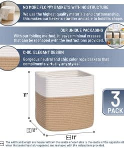 NaturalCozy Storage Cubes 11 Inch Cotton Rope Woven Baskets