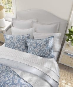 El juego de funda nórdica Tortola de Nautica presenta un patrón que reinventa el espacio del dormitorio. La impresión consiste en un hermoso patrón floral blanco pintado disperso en el fondo azul de la tela, que se invierte en una reinterpretación de un tejido de canasta fragmentado en azul. Cada funda nórdica y almohada está construida con algodón 100% – especialmente diseñado para la durabilidad. La cara de tejido de dos vías impreso se invierte en un tejido liso de algodón. La funda nórdica cuenta con cierre de botones y lazos internos adicionales para mantener el inserto de la funda en su lugar durante el uso. Las fundas de almohada cuentan con un ribete auto que agrega un toque de delicadeza que se traduce del patrón en la parte superior de la cama. El conjunto es lavable a máquina para un cuidado fácil y el inserto de la funda nórdica se vende por separado.