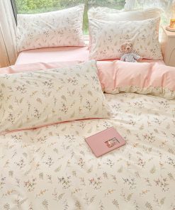 Nayoroom Floral Duvet Cover Juego de Funda Nórdica Chicas Rosa Blanco Botánico Flores Acolchado Juego de Ropa de Cama 3 Piezas Suave Transpirable Jardín Estilo Cottagecore Cubierta de Edredón con Fundas de Almohada