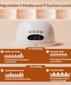 El Extractor de Leche Manos Libres NCVI 8131 está diseñado para la conveniencia del uso manos libres. Las opciones de 3 modos ayudan a que el extractor de leche portátil sea más cómodo de usar. 9 niveles de succión para optimizar la producción de leche imitando la frecuencia real de alimentación del bebé. Personalice su experiencia de lactancia como desee. Diseñado con una pantalla digital para monitorear los niveles de succión, el extractor de leche NCVI opera a un nivel de ruido bajo de solo 45 dB. Puede usarlo sin preocuparse de molestar a su bebé o a otros. Para adaptarse perfectamente a su sostén, este extractor de leche tiene un cuerpo ergonómico semicircular que se adapta a la forma de su pecho, ofreciendo una discreción superior y la libertad de extraer leche en cualquier momento y lugar. Hecho de silicona de grado alimenticio y libre de BPA, el extractor es seguro tanto para las mamás como para los bebés. Una carga completa ofrece hasta 150 minutos de funcionamiento, lo que permite 5-6 sesiones de extracción. La carga USB facilita recargar en cualquier lugar. Se incluyen tres tamaños diferentes de insertos de copa: 19mm, 21mm y 24mm para satisfacer las diferentes necesidades de la mayoría de las mamás. Disfrute de una experiencia de extracción más cómoda, succión más fuerte y eficiente con el Extractor de Leche Manos Libres NCVI 8131!