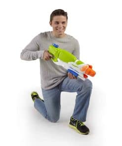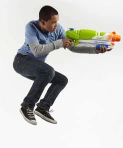La marca Super Soaker de Nerf ha sido líder en la diversión innovadora de chorros de agua desde 1989. Continúa siendo la marca de elección cuando quieres empaparte con lo mejor. Niños de todas las edades pueden reunirse y salir al aire libre para desatar el máximo empapamiento con los juguetes Super Soaker, la marca auténtica de pistolas de agua. Y ahora la pistola de agua Super Soaker Barrage te brinda tres modos de diversión con agua. ¡Empapa o déjate empapar! El potente empapado utilizando tres modos diferentes. Tus juegos de chorros de agua tomarán una nueva dimensión con la pistola de agua Super Soaker Barrage. Esta pistola de alto rendimiento te ofrece una variedad de modos para que puedas elegir la intensidad y el patrón de pulverización de tus chorros de agua. Supera a la competencia y determina tu estrategia al desatar cualquiera de sus tres modos diferentes. Simplemente llena el tanque con agua, bombea para disparar y bloquea tu modo con un giro rápido de la boquilla. Cambia tu objetivo. Cuando llevas la pistola de agua Super Soaker Barrage a una batalla de agua, ¡estás equipado para desatar un diluvio de diversión empapante! Bombardéa a tu competencia con un solo y potente chorro de agua en el Modo Distancia, amplía tu objetivo usando el Modo Scatter o provoca estragos con humedad usando el Modo Flood aún más amplio. Esta impresionante soaker con tres modos es como tener tres pistolas de agua al alcance de tus dedos. ¡Así que equípate, sal al aire libre y empápate! Empapa a tus amigos desde hasta 38 pies de distancia. La pistola de agua Super Soaker Barrage no solo te ofrece tres corrientes de agua diferentes para elegir; también te ofrece un enorme tanque de capacidad. Esta pistola de agua puede contener increíbles 84 onzas (2.4 litros) de agua para una ola aplastante de empapamiento. Además, el chorro de agua puede alcanzar impresionantes 38 pies (11.5 metros) en modo Distancia.