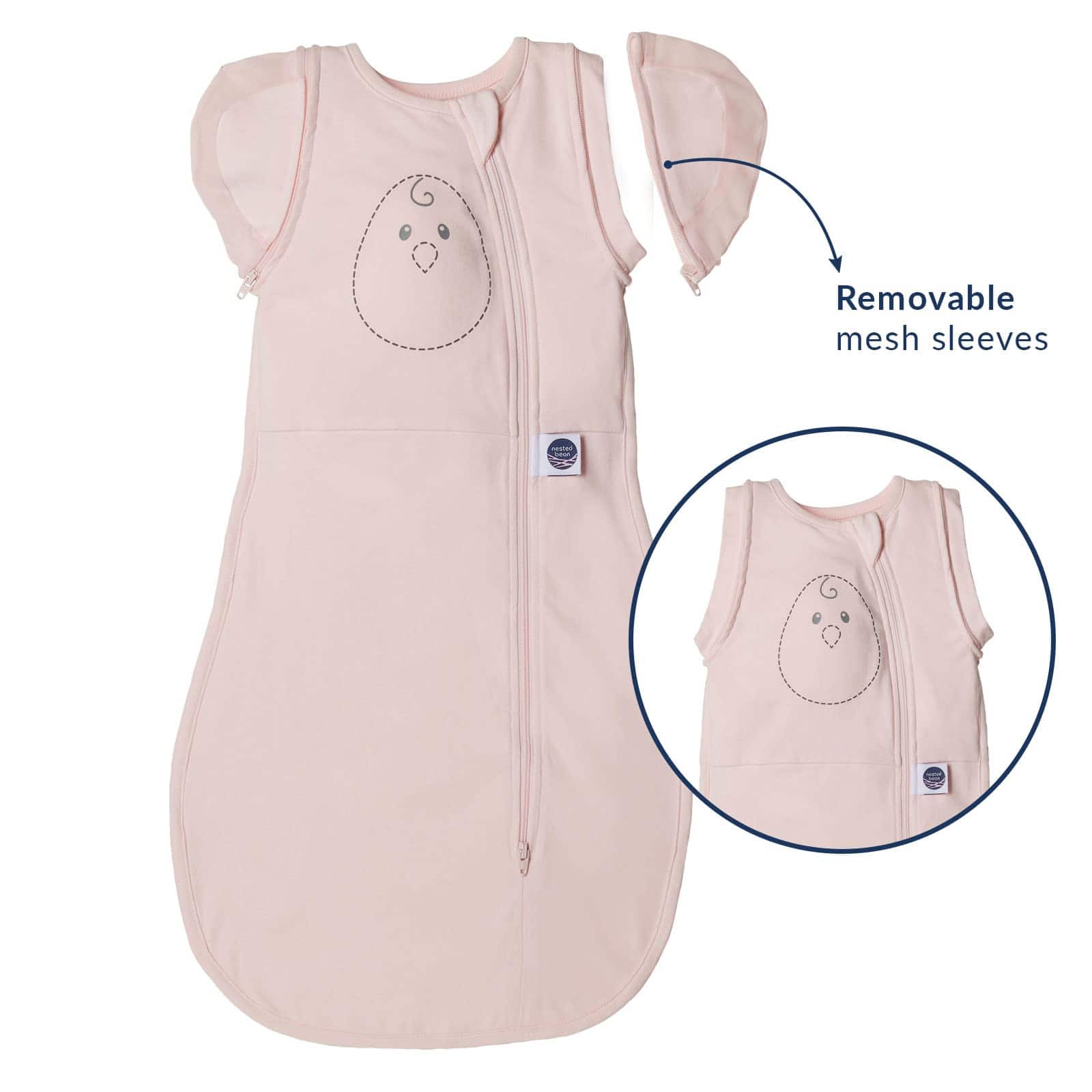 4. Características especiales. 3 Almohadillas de Cuddle pesadas con suavidad, mientras la banda interior ajustada previene sobresaltos, las mangas de malla de secado rápido ayudan a los chupadores de dedos a autocalmarse y las mangas extraíbles permiten el swaddling con los brazos afuera a medida que el bebé comienza a rodar. La cremallera de doble vía facilita el cambio de pañales.