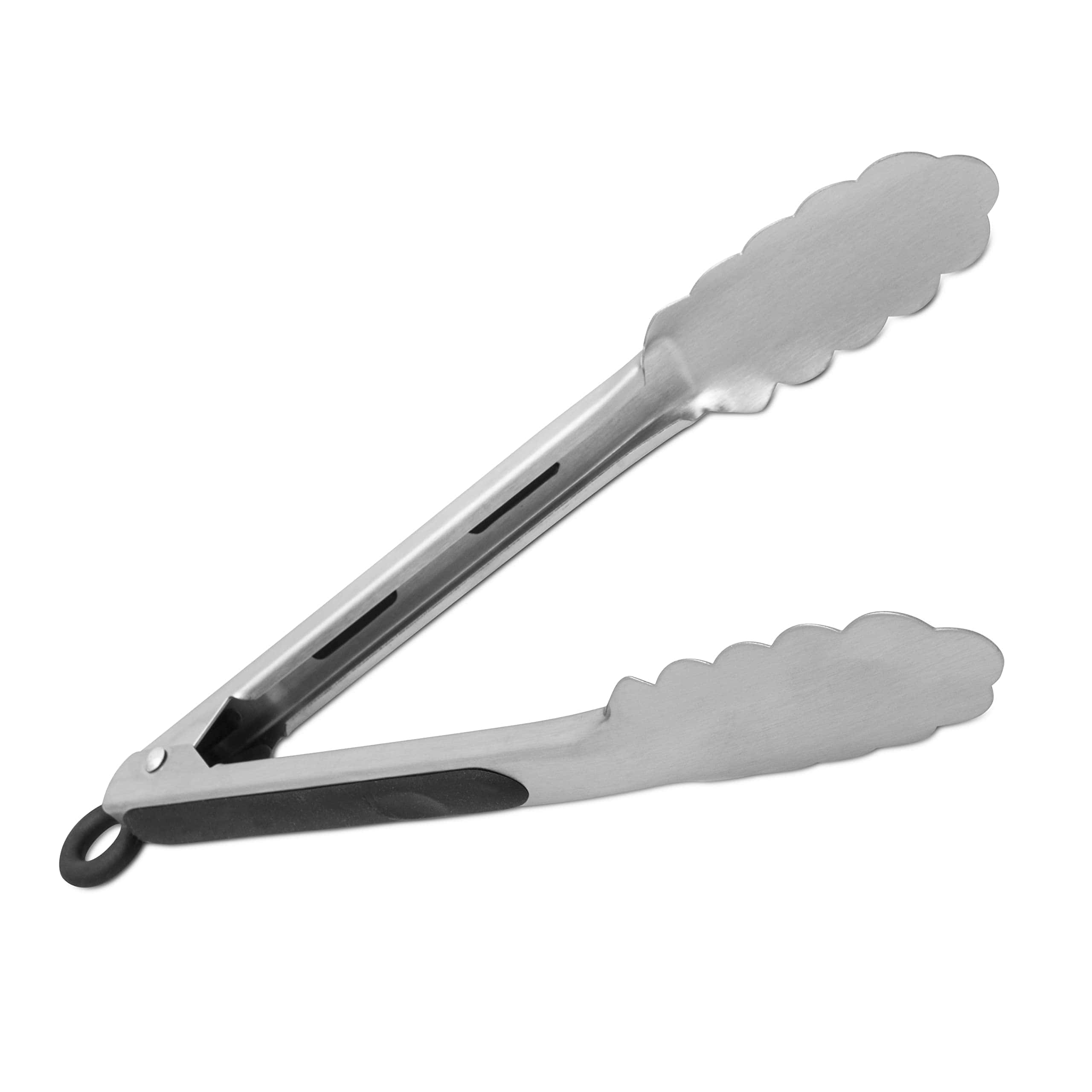 El área del asa curva y espaciosa permite al usuario mover la cesta alrededor de la parrilla de la barbacoa con facilidad. El diseño de resorte de las pinzas facilita ajustar las pinzas, permitiendo al usuario recoger o mover la comida.