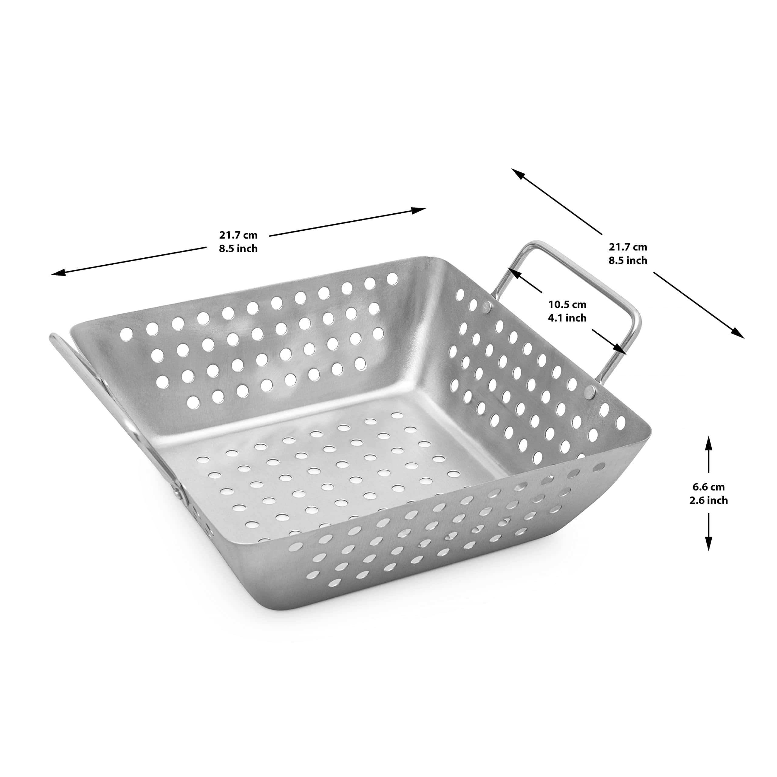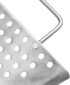 La cesta tiene lados altos y puede contener varios vegetales picados, una generosa cantidad de camarones o carne. La cesta es del tamaño perfecto para permitir que otros alimentos se cocinen en la parrilla de la barbacoa junto a la cesta.