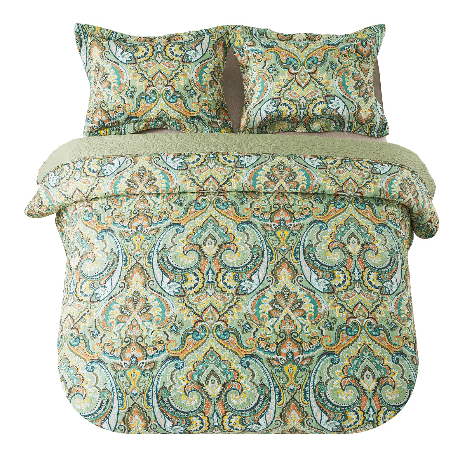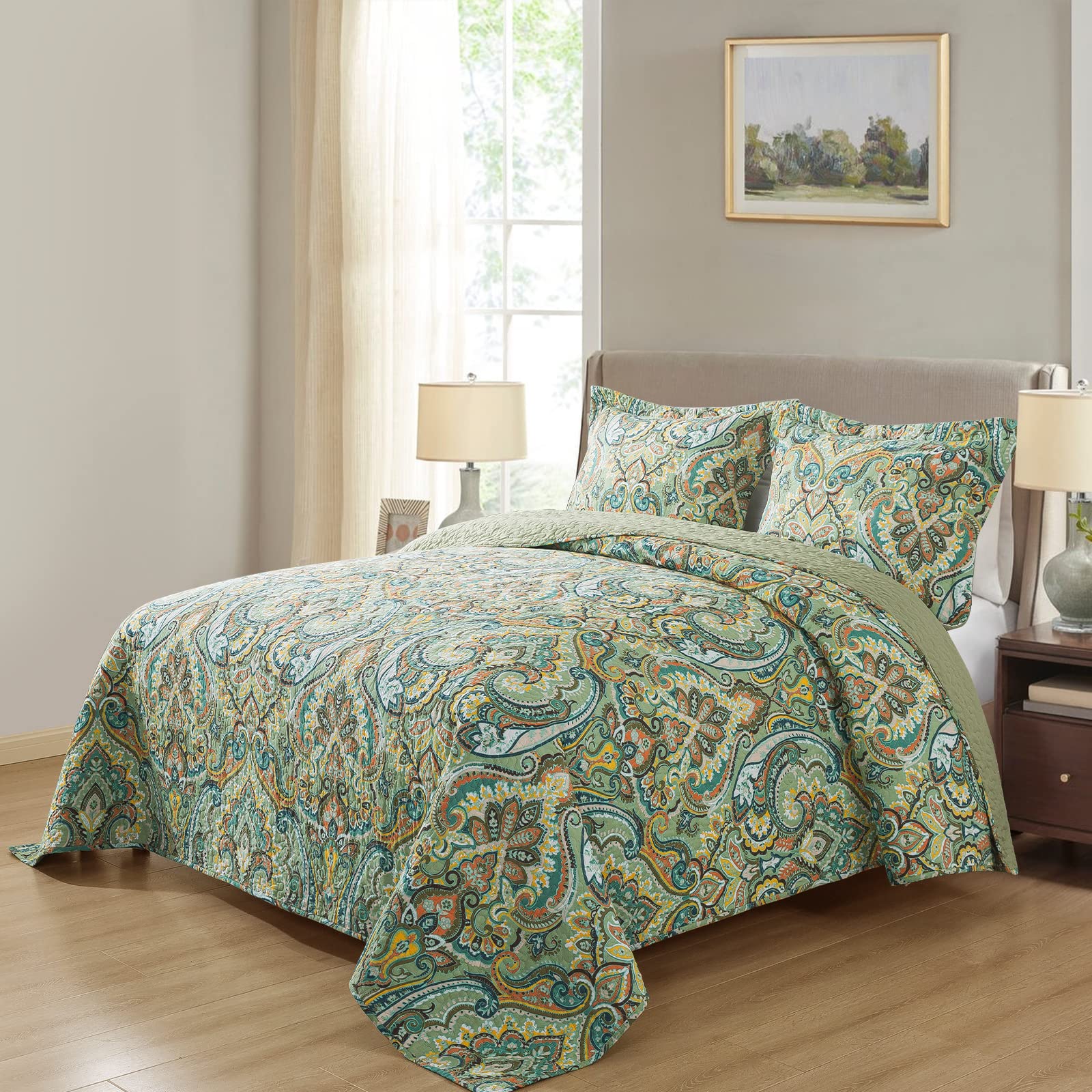 El juego de colcha duradero presenta un patrón floral clásico en toda la colcha y se acentúa en los lados con bordes festoneados para completar la colcha de cama. Dale un toque de elegancia a tu habitación con este conjunto de colcha de alta calidad que ofrece comodidad y estilo. La colcha reversible de patchwork te permite cambiar la apariencia de tu dormitorio según tu estado de ánimo. Este conjunto de colcha de algodón es ideal para darle un toque fresco y acogedor a tu dormitorio.