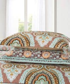 5. Juego de edredón duradero: Patrón floral clásico europeo en todo el edredón y acentuado en los lados con bordes festoneados para completar el edredón de cama.