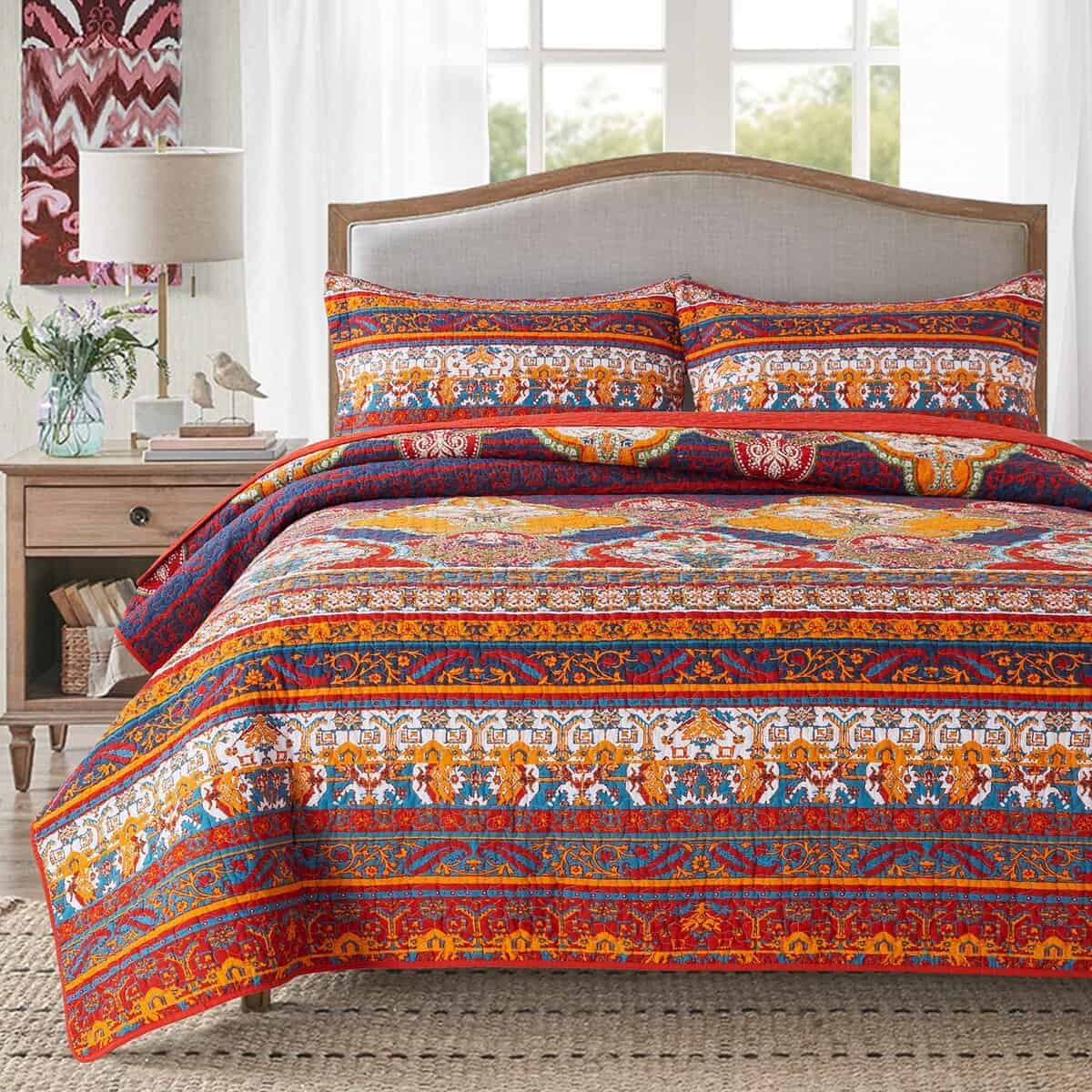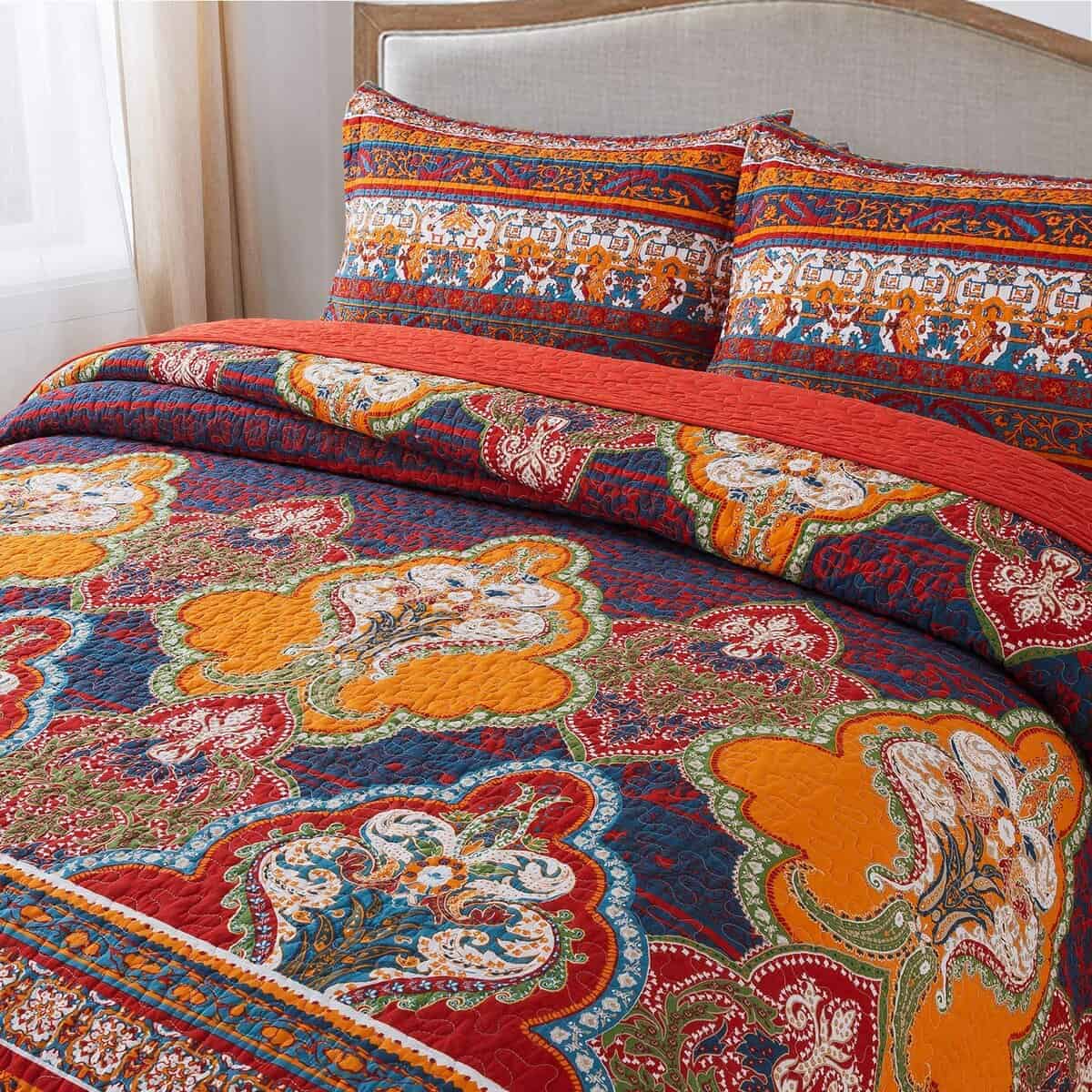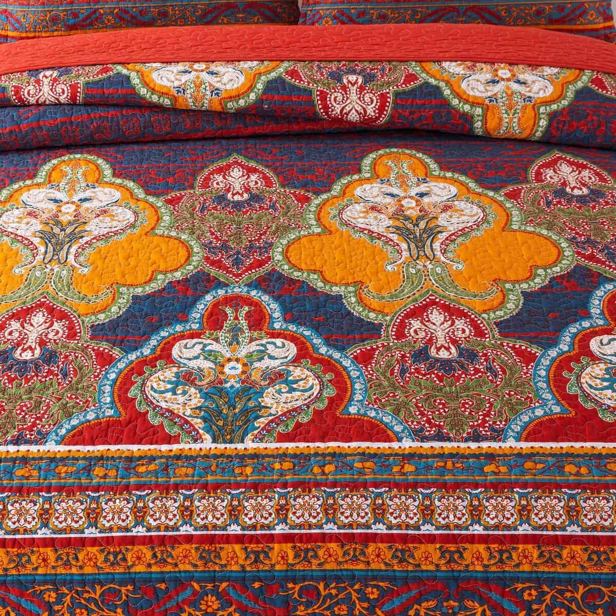 5. Juego de Colchas Duradero: Patrón Floral Clásico Europeo en toda la colcha y acentuado en los lados con bordes festoneados para completar la colcha de cama.