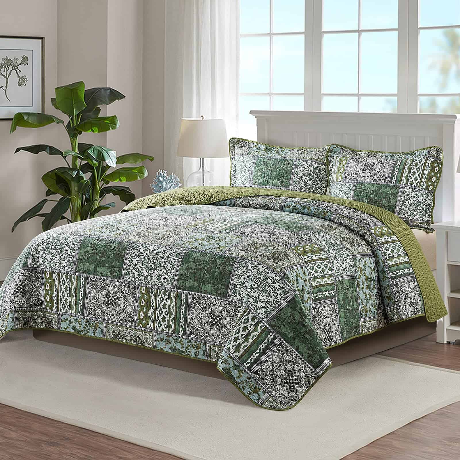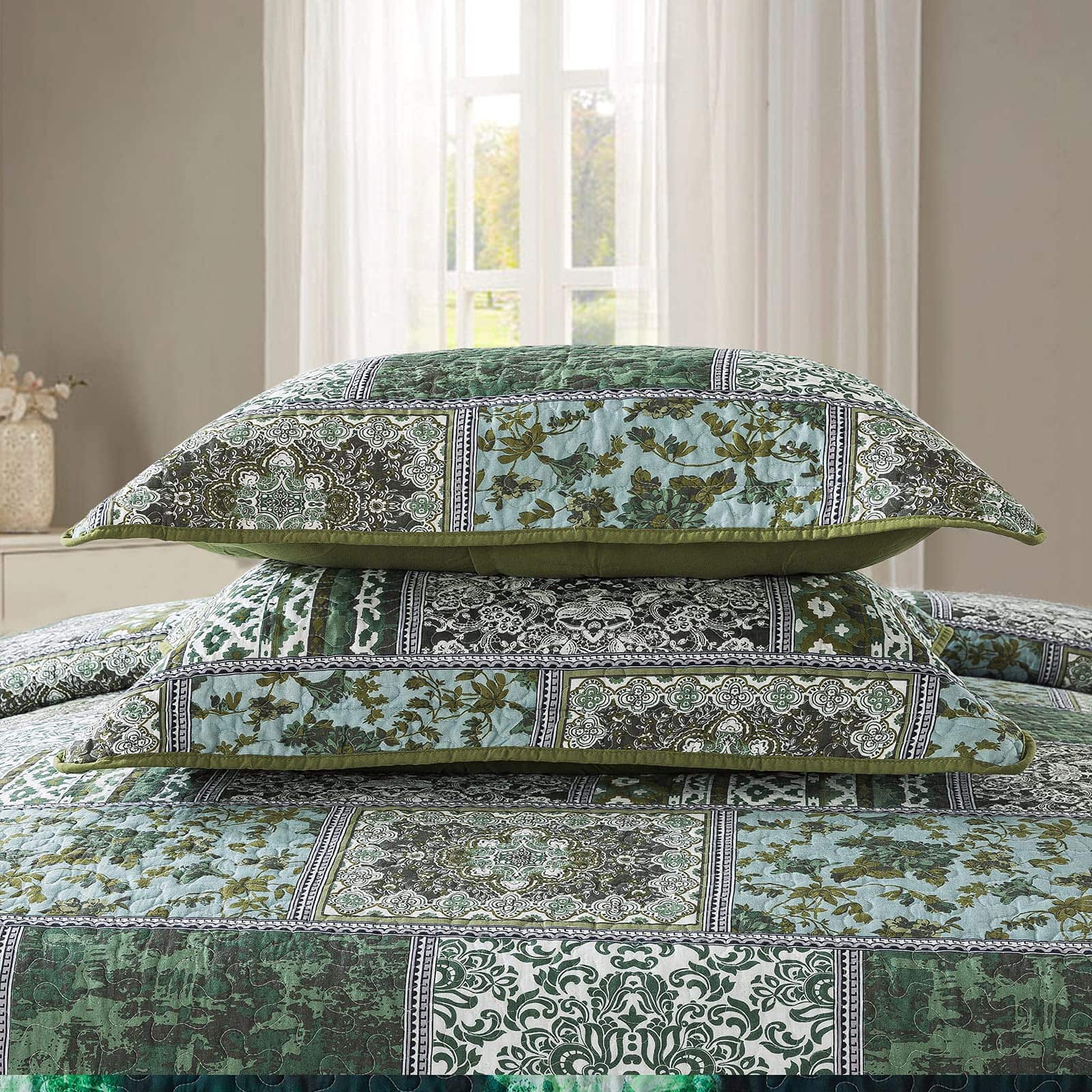 NEWLAKE Juego de Colchas de -Verde Bohemio Clásico