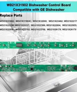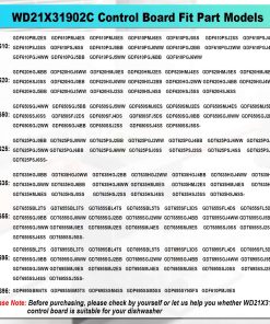 La tarjeta de control de lavavajillas WD21X31902C es un repuesto directo para las partes WD21X31902 WD21X32000 WD21X23462 WD21X22175 WD21X22236 WD21X22237 WD21X22366 WD21X22804 WD21X22955 WD21X22956 WD21X23702 WD21X23709 WD21X26178 WD21X26179, lo que garantiza un ajuste perfecto y una fácil instalación.