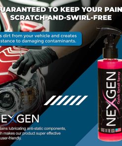 Nexgen Quick Detail Spray realza el brillo mientras rejuvenece la superficie existente, creando un aspecto recién encerado y húmedo. La versatilidad se encuentra con el detallado con Nexgen Quick Detail Spray. Esta fórmula es la nueva elección para la limpieza de manchas, mantenimiento de revestimientos cerámicos y lubricación para detallado con barro. ¡Lo que sea, Nexgen Quick Detail Spray puede hacerlo! Con sus componentes antiestáticos lubricantes, este spray de detallado está garantizado para mantener su pintura libre de arañazos y remolinos por más tiempo, levantando la suciedad de la capa transparente de su vehículo y resistiendo la atracción estática del polvo y otros contaminantes dañinos. Ya sea que esté limpiando unos restos de insectos, realizando un desengrase completo o su detalle trimestral con barro, ¡asegúrese de que Nexgen Detail Spray esté en su kit de detallado! Características Clave: Lubricantes y polímeros de primera calidad Preserva la vida útil de su pintura Levanta impurezas Crea un aspecto recién encerado y húmedo Úselo como toallita final o spray de mantenimiento intermedio Toque perfecto para terminar cualquier detalle Con más de 20 años en la industria del cuidado automotriz, la fórmula patentada de cerámica, dióxido de silicio y polímeros de Nexgen se ha convertido en el pilar de detalles profesionales y concesionarios de automóviles. Nuestros productos ofrecen las mejores soluciones para limpiar, proteger y garantizar la longevidad de la pintura, cromo y acabado general de su vehículo. Con más de 1000 detallistas profesionales, concesionarios de autos y propietarios de súper autos proporcionando comentarios durante los últimos 20 años, nuestra fórmula se ha refinado para proporcionar la más alta calidad con el tiempo de aplicación más rápido.