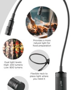 NextLED NT-7647-F es la solución ideal para iluminar tu parrilla al aire libre. Con su iluminación natural única, podrás ver el verdadero color de los alimentos mientras los cocinas. Diseñado para resistir el calor y el agua, esta luz de parrilla tiene una clasificación IP-54 que la hace perfecta para uso en exteriores. Su diseño de cuello de ganso flexible y la función de zoom te permiten ajustar la luz exactamente donde la necesitas. Además, la base magnética fuerte te permite colocarla fácilmente en cualquier superficie metálica y también puedes usarla con la abrazadera de metal incluida para superficies no metálicas. Con la garantía de calidad de 365 días de NextLED, puedes comprar con confianza sabiendo que estás obteniendo un producto de alta calidad. Añade la luz de parrilla NextLED NT-7647-F a tu carrito ahora y disfruta de una mejor experiencia de parrilla al aire libre.