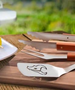 La NFL y Bud Light se unen para brindarte una experiencia de parrilla que te permite mostrar el orgullo del equipo mientras usas con orgullo nuestro producto de calidad. Este set de parrilla de tres piezas viene con una base de acero inoxidable y se complementa con un mango de arce trabajado en madera. Todo esto se une con remaches de latón duraderos que muestran la calidad de este producto hecho en Estados Unidos. Pero no termina con los fundamentos, Bud Light x NFL va mucho más allá con escritura/diseño grabado con láser en los mangos y un logo de Texans recortado en la espátula.