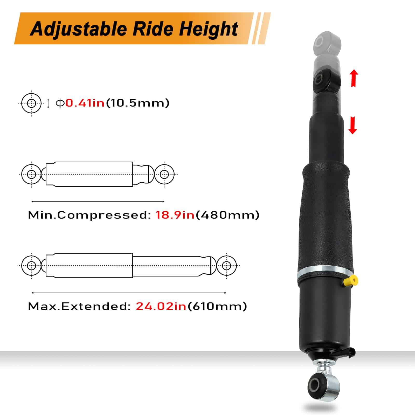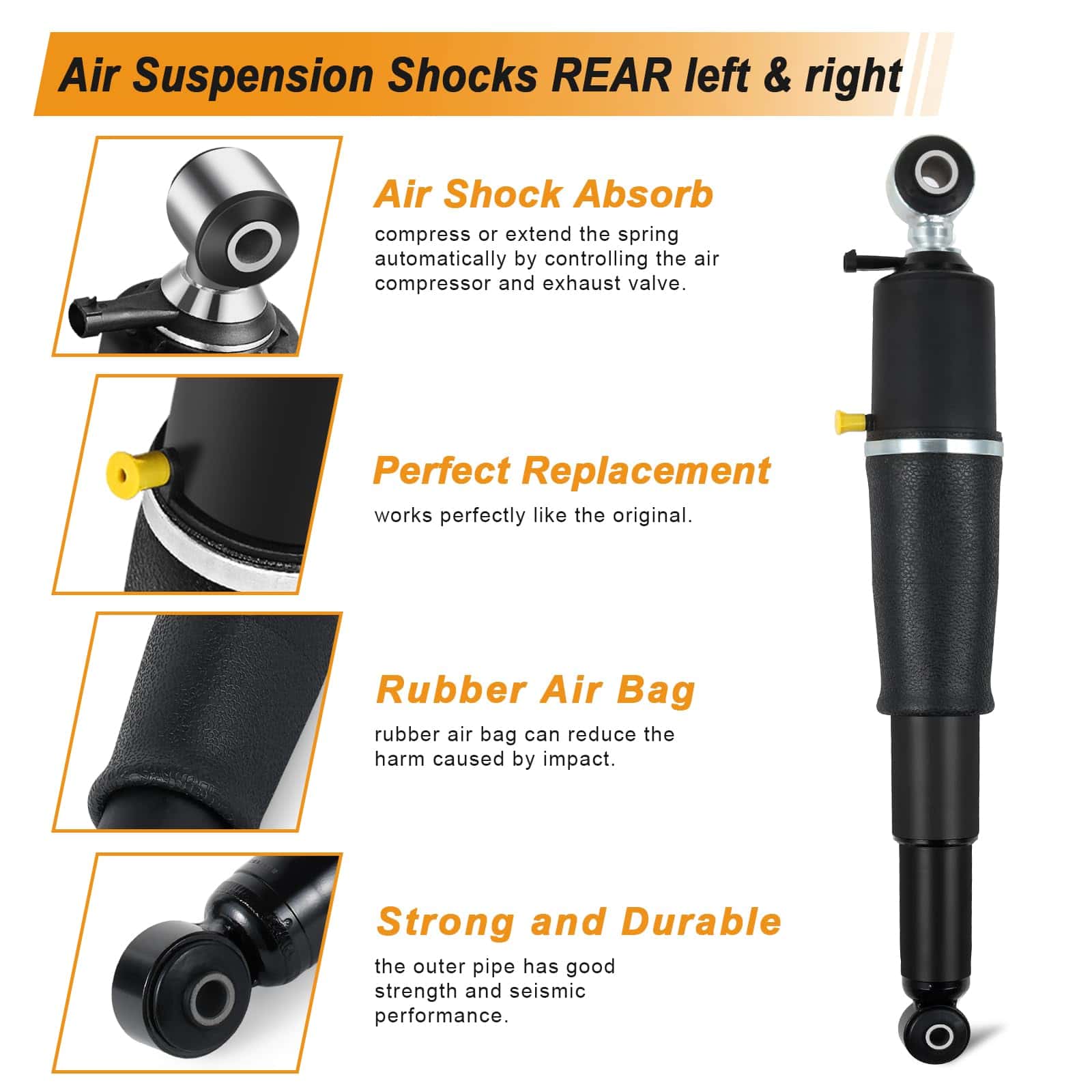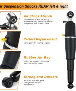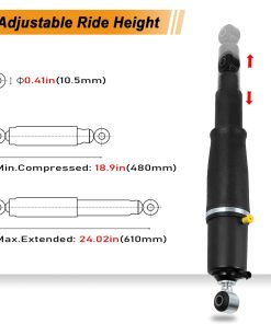 4. D. CALIDAD SUPERIOR: Los amortiguadores de resorte de suspensión neumática están hechos de acero metal reforzado y excelentes gomas. Es más duradero que la bolsa de resorte de amortiguador de aire ordinaria, con mejor rendimiento de compresión y capacidad de carga. Máximo confort de conducción y frenado.