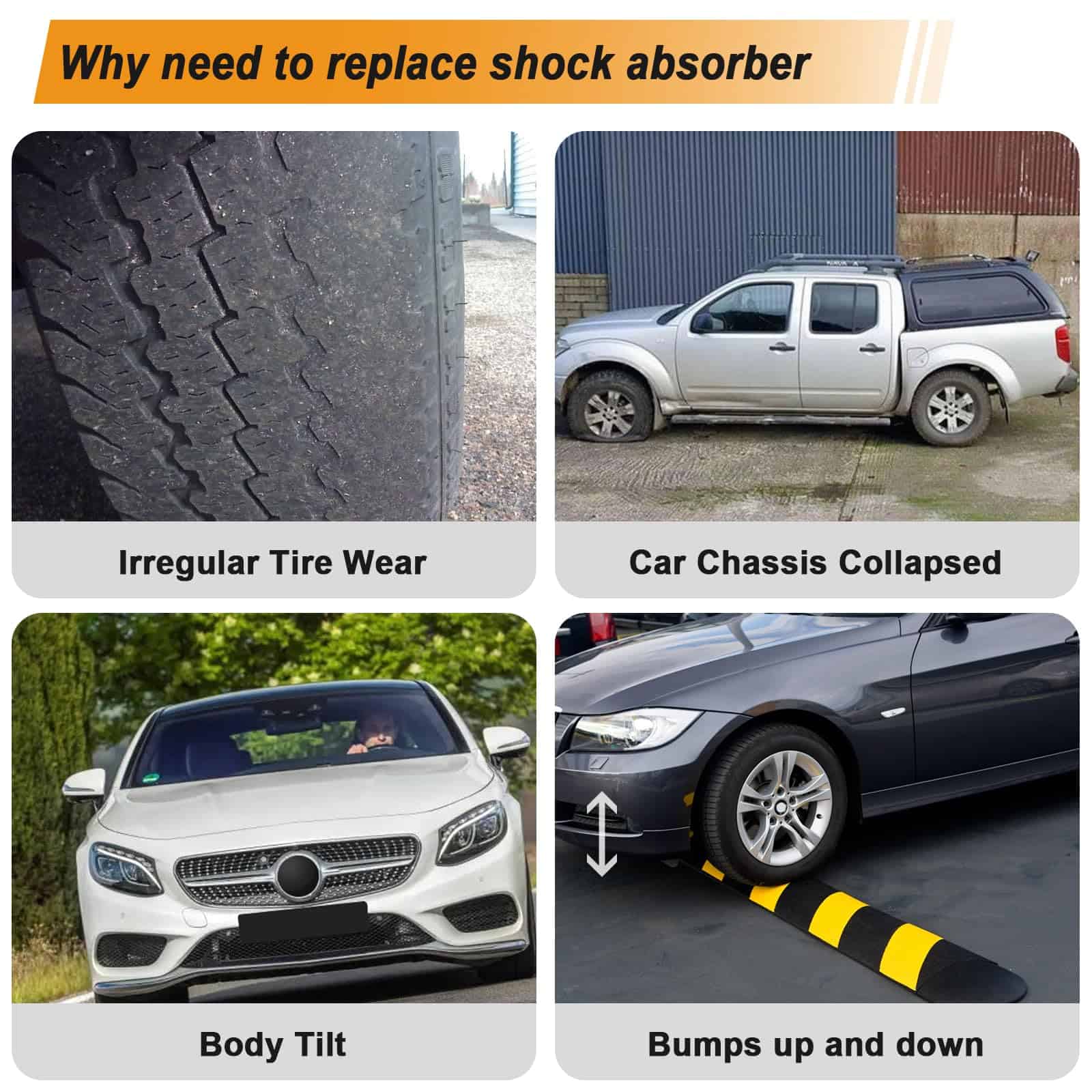 3. C. FUNCIÓN: Los amortiguadores traseros están diseñados para ayudar a compensar el desgaste normal de otros componentes, y ayudarán a mejorar la calidad de la conducción, reducir las vibraciones y mejorar las capacidades de giro del vehículo.
